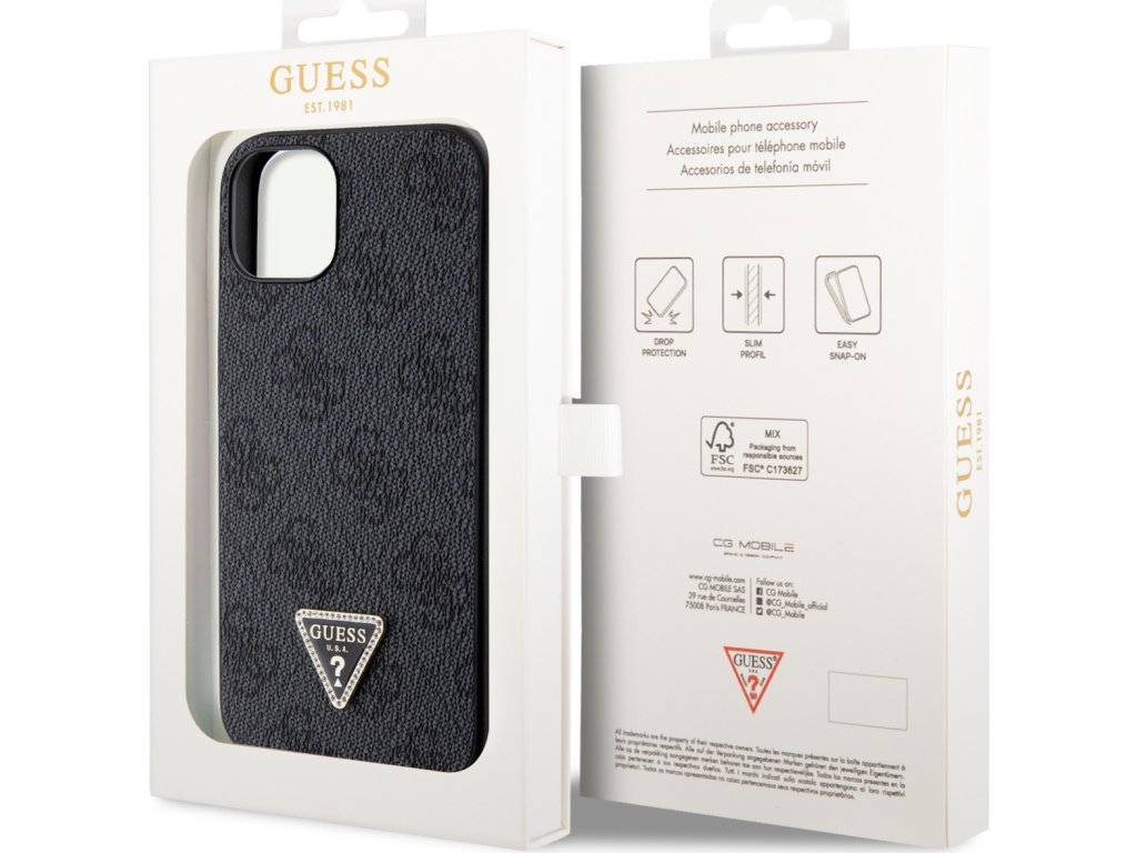 Prémiový zadný kryt Guess PU 4G Strass Triangle Metal Logo sa vyznačuje elegantným, charakteristickým 4G vzorom, doplneným o zlaté triangle logo GUESS. Kryt je vyrobený z pružného a pevného PU materiálu s povrchovou úpravou z PU kože a ponúka tak nielen skvelú ochranu telefónu, ale aj pohodlie pri používaní. Táto povrchová úprava zaisťuje pevný úchop, čo minimalizuje riziko, že telefón vykĺzne z ruky. Vďaka presnému tvaru perfektne sedí na telefóne a umožňuje ľahký prístup ku všetkým tlačidlám a konektorom. Tento prvotriedny kryt je skvelou ponukou pre ľudí, ktorí si v móde cenia nielen exkluzívneho vzhľadu, ale aj vysokej kvality a funkčnosti. Je to nevyhnutný doplnok pre každého, kto hľadá kombináciu elegancie a prestíže. Kľúčové vlastnosti: - Originál Guess - Kovové trojuholníkové logo Guess na zadnej strane. - Ľahký a odolný kryt z PU a PU kože - Skvele sa drží v ruke a nekĺže - Presne kopíruje tvar telefónu a umožňuje ľahký prístup k tlačidlám a konektorom. - Chráni telefón pred prachom a poškriabaním - Luxusný doplnok pre váš telefón aj outfit