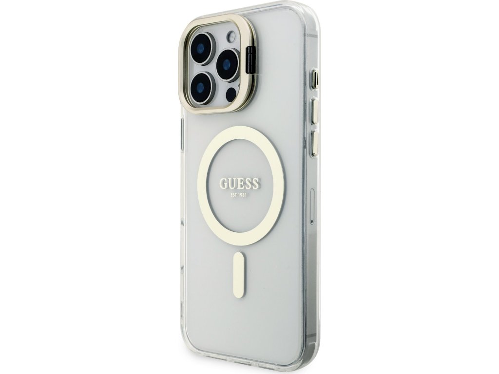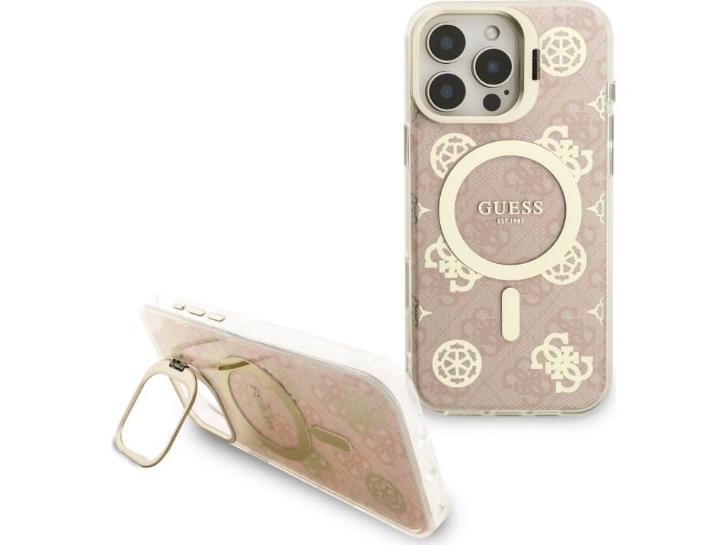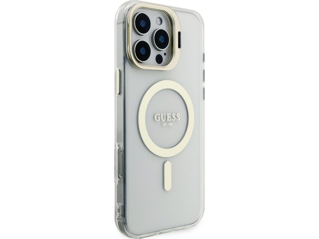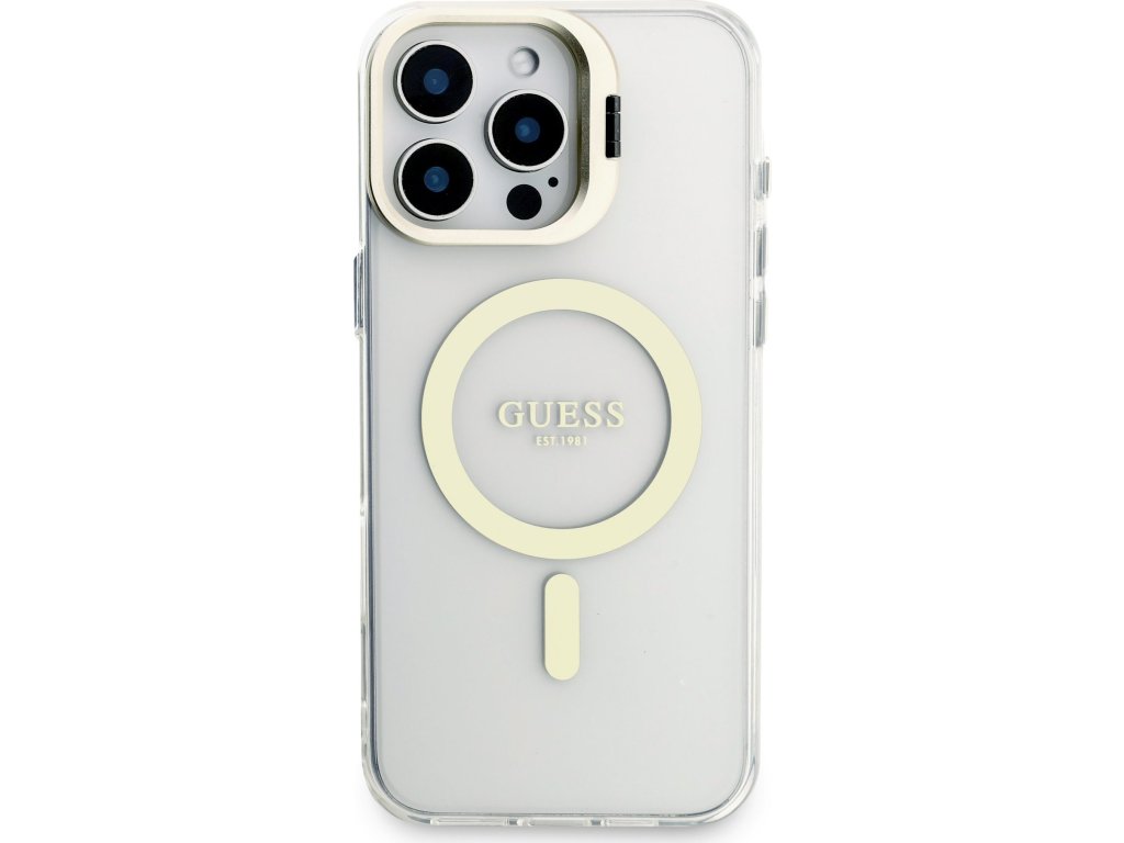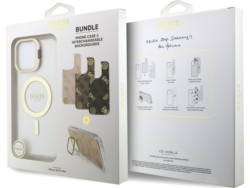 Guess PC/TPU Electroplated Stand Camera Frame MagSafe Zadný Kryt s Vymeniteľným Pozadím pre iPhone 16 Pro Max