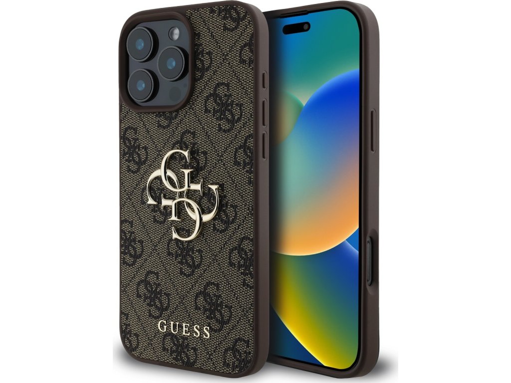 Guess PU 4G Metal Logo Zadný Kryt pre iPhone 16 Pro Max Brown
