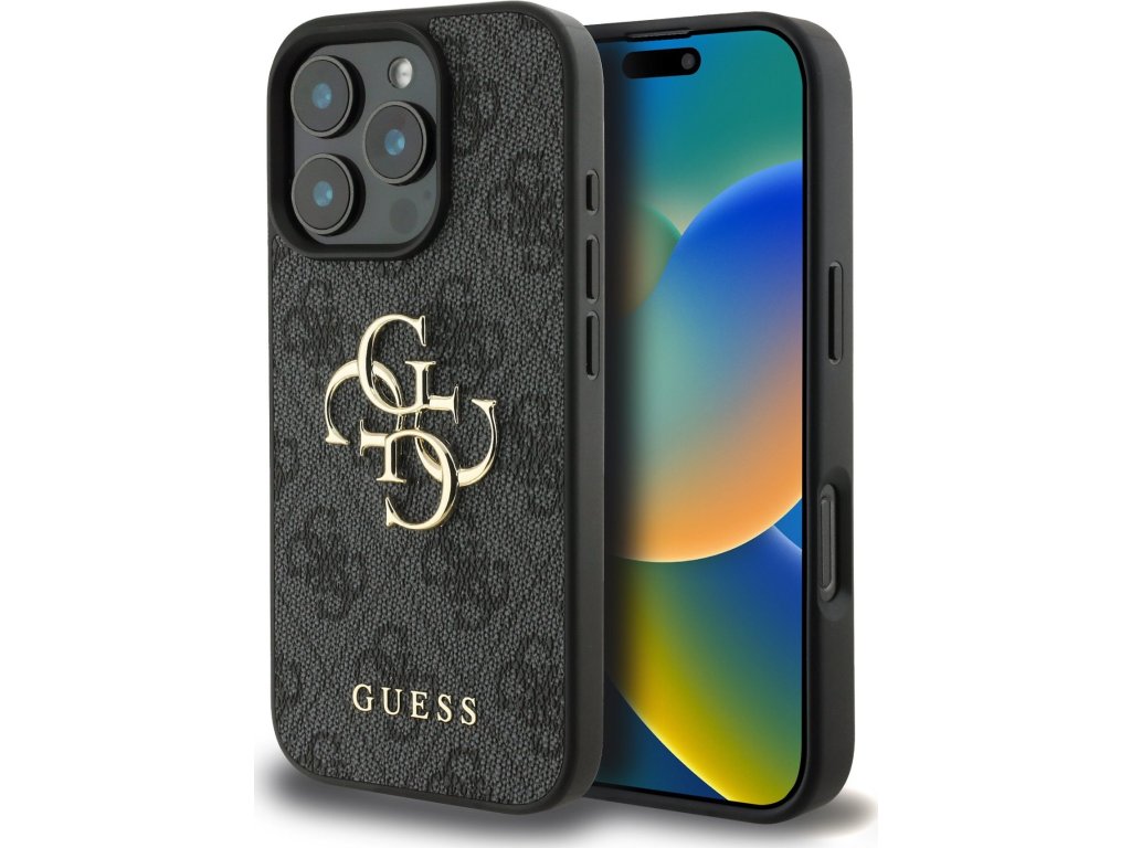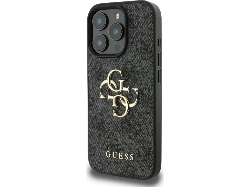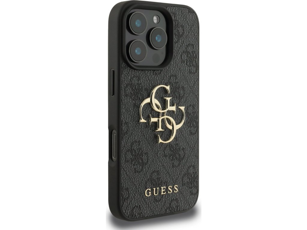 Guess PU 4G Metal Logo Zadný Kryt pre iPhone 16 Pro Max Grey