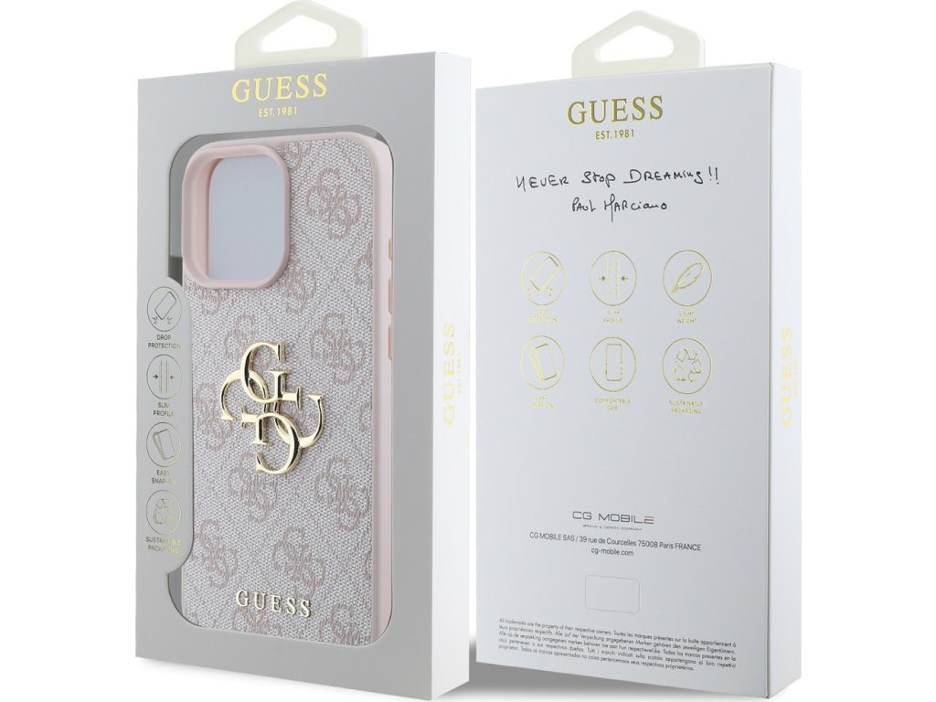Guess PU 4G Metal Logo Zadný Kryt pre iPhone 16 Pro Max Pink