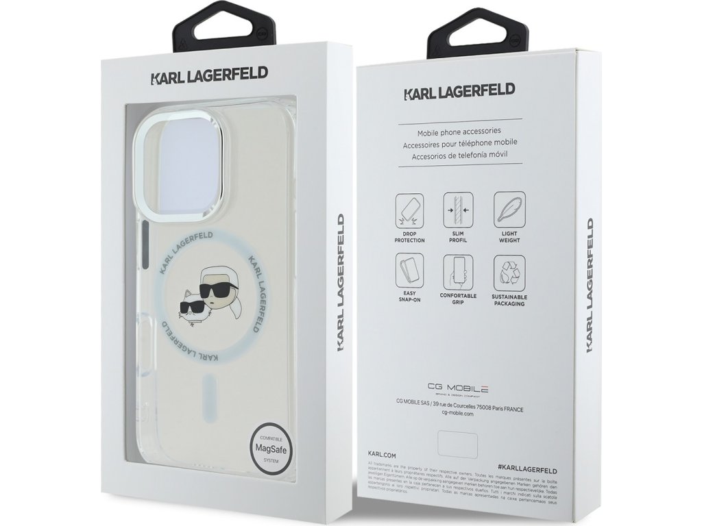 Karl Lagerfeld IML K&CH Heads Metal Frame MagSafe Zadný Kryt pre iPhone 16 Pro Max Transparent