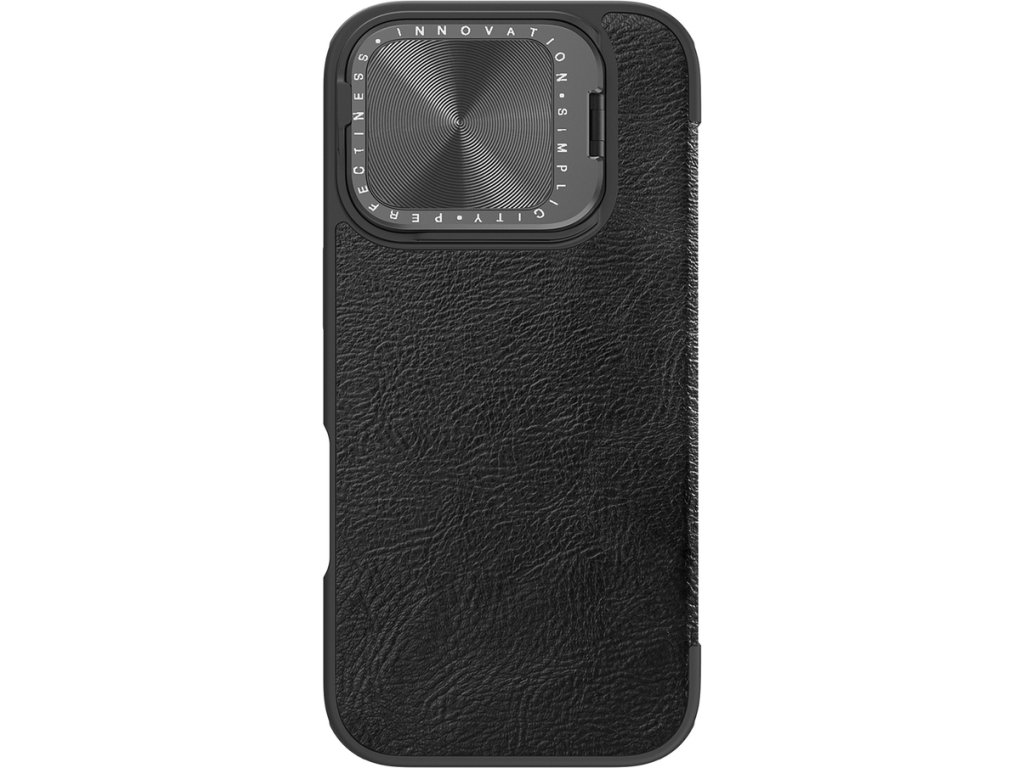 Kožené puzdro Nillkin Qin Prop s krytom fotoaparátu a stojanom pre iPhone 16 Pro Max – čierne