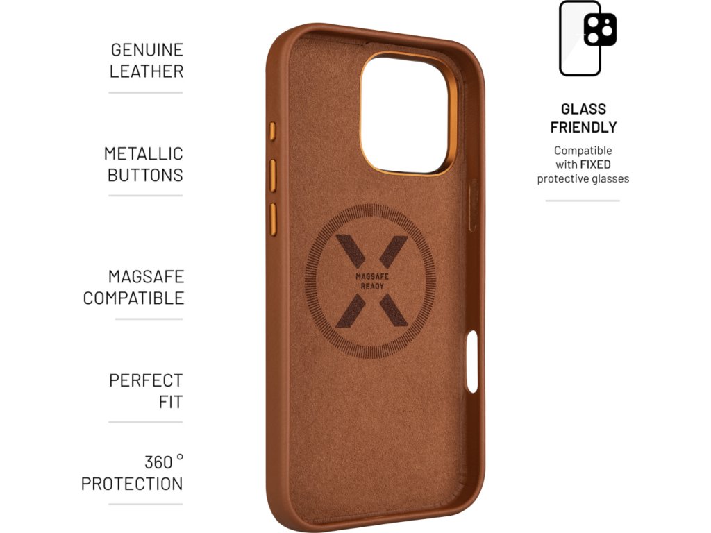 Zadný kryt FIXED MagLeather s podporou funkcie MagSafe, vyrobený z pravej kože pre dokonalú ochranu vášho Apple iPhone. Puzdro zaujme na prvý pohľad elegantným vzhľadom farebnej kože v kombinácii s metalickými krytmi tlačidiel a lemovaním okraja výrezu na fotoaparát. Časom každý kryt získa jedinečnú a originálnu patinu a zreje tak ako víno. Vďaka integrovaným magnetom v zadnej časti kryt MagLeather perfektne spolupracuje so všetkým MagSafe príslušenstvom. Vnútorná strana krytu je tvorená jemnou výstelkou z mikrovlákna pre dokonalé bezpečie vloženého telefónu. FIXED MagLeather je navrhnutý presne na mieru danému modelu telefónu, dokonale sedí a dobre sa drží v ruke.