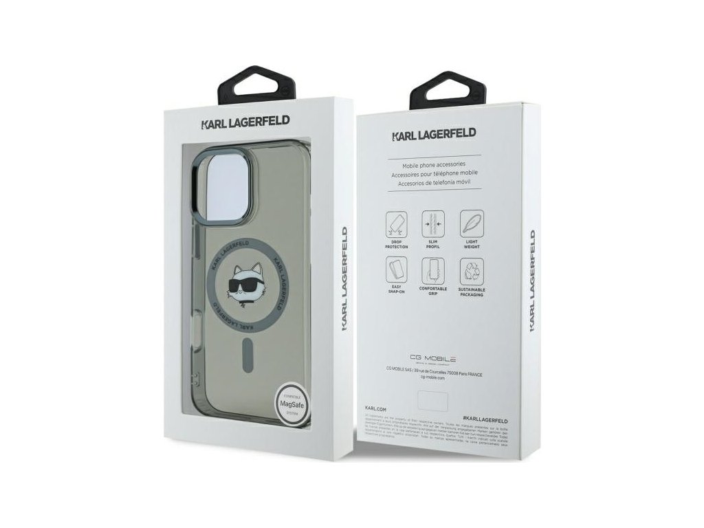 Pouzdro Karl Lagerfeld pro iPhone 16 Pro Max 6,9" KLHMP16XHLSCHK černé Tvrdé kovové pouzdro IML Choupette Head MagSafe