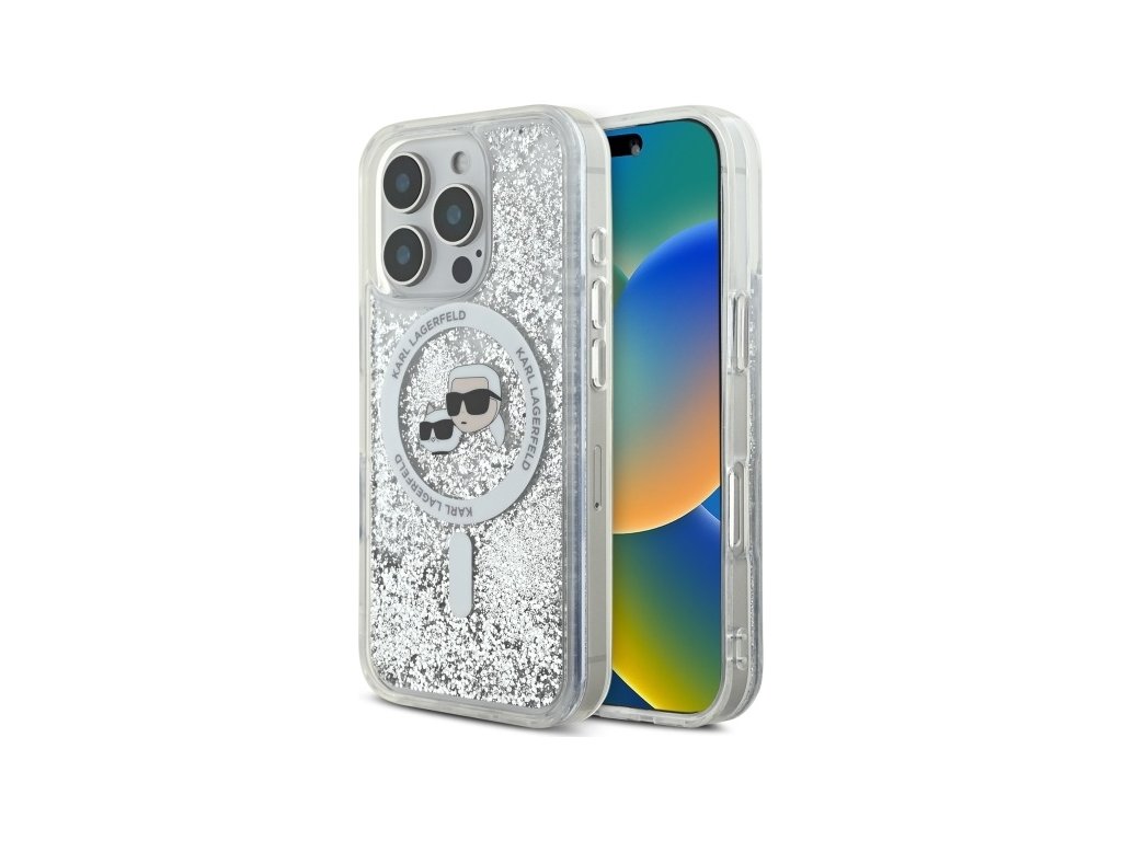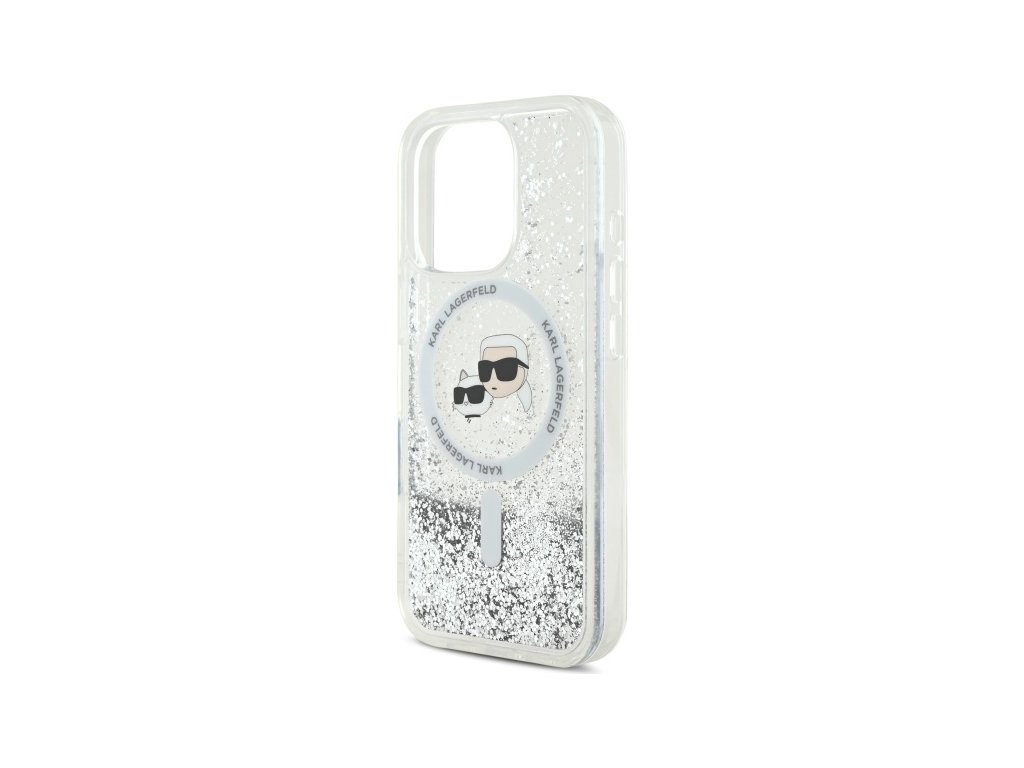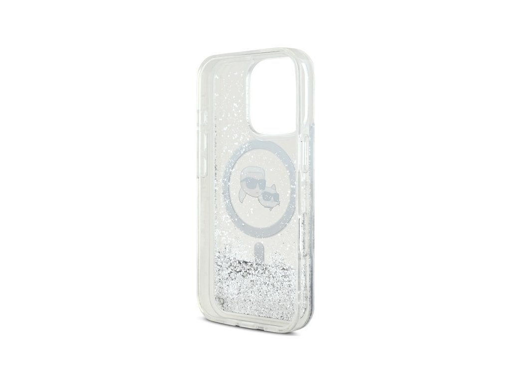 Pouzdro Karl Lagerfeld pro iPhone 16 Pro Max 6,9" KLHMP16XLGKCSGH průhledné Hard Liquid Glitter Karl&Choupette Head MagSafe
