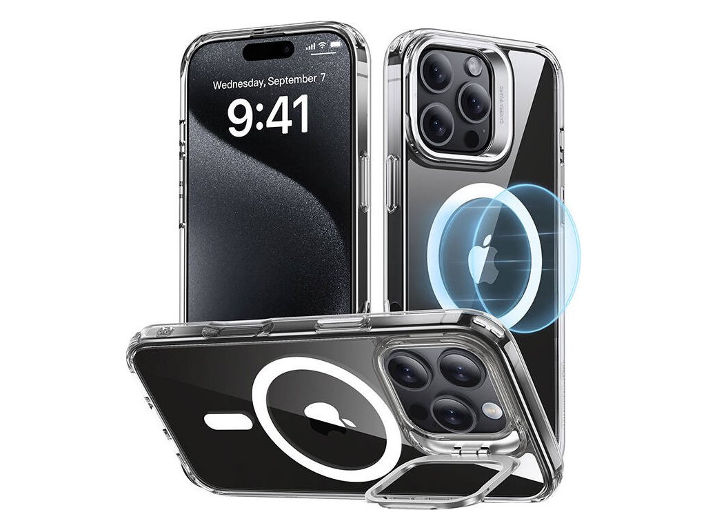 Puzdro ESR Classic Hybrid (HaloLock) so stojanom pre iPhone 16 Pro (priehľadné).