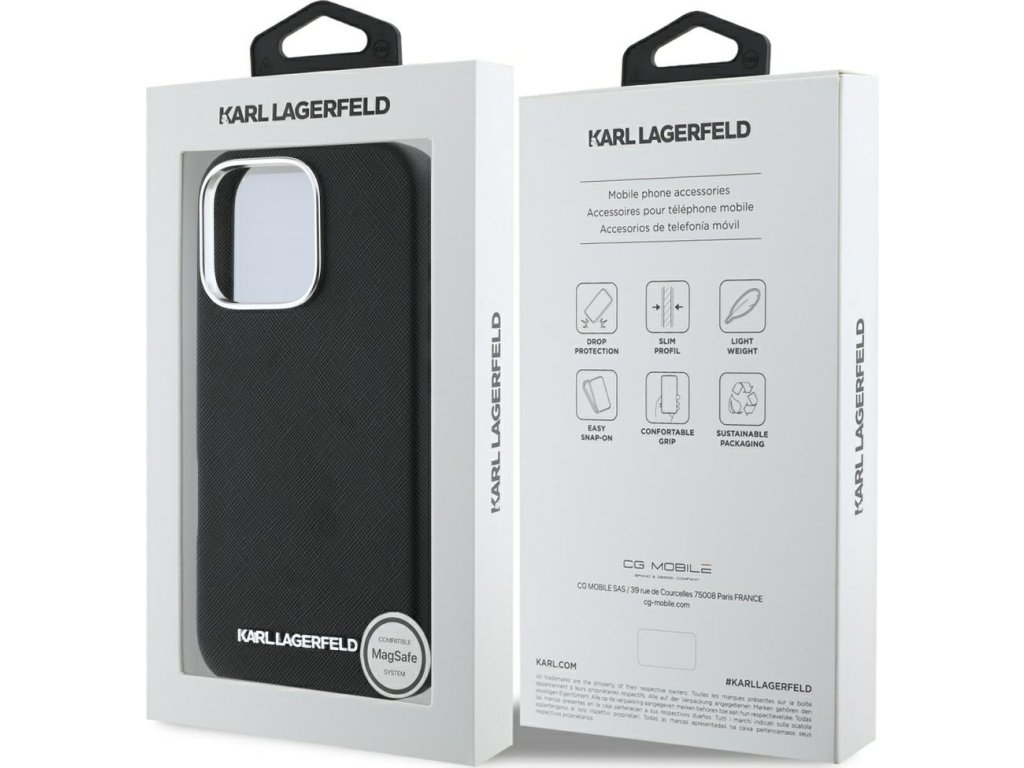 Pouzdro Karl Lagerfeld Hardcase MagSafe FW Saffiano Metal Logo pro iPhone 16 Pro 6,3" černé