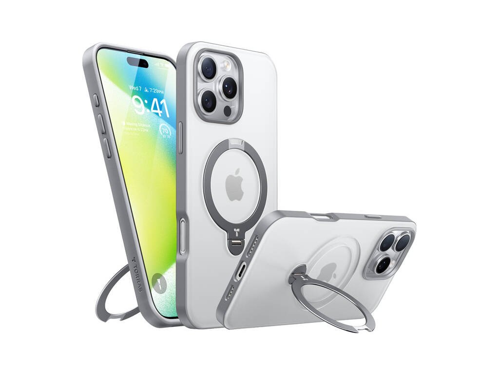 Puzdro Torras Ostand Spin pre iPhone 16 Pro (sivé)