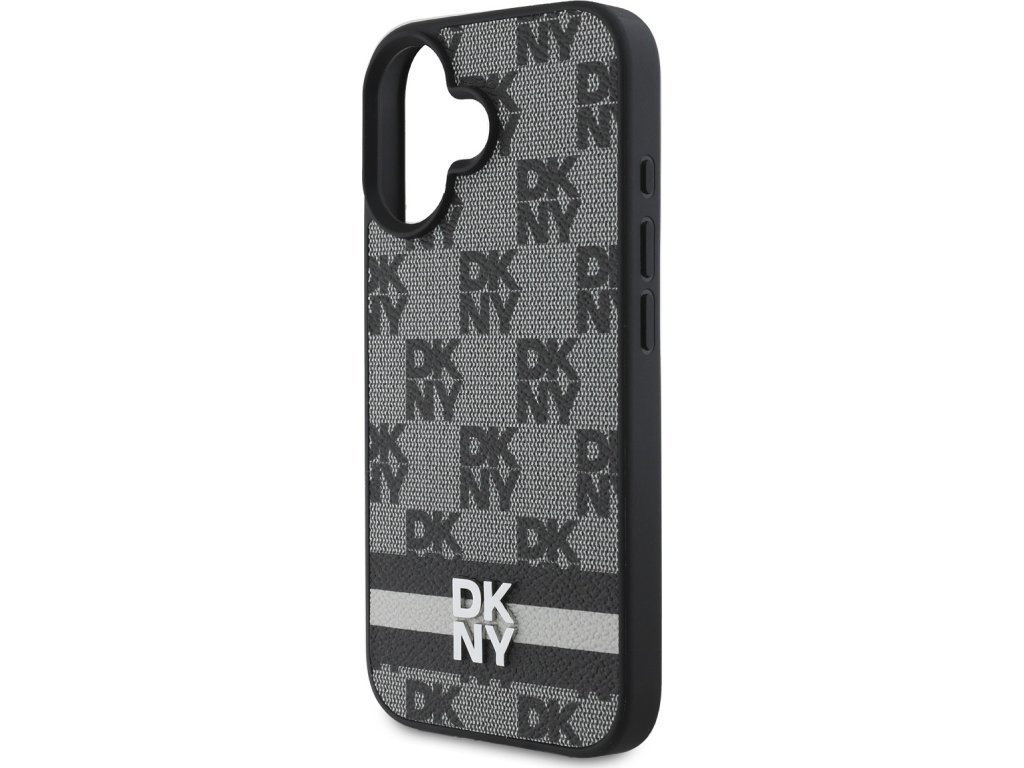 DKNY PU Leather Checkered Pattern and Stripe Zadný Kryt pre iPhone 16 Black