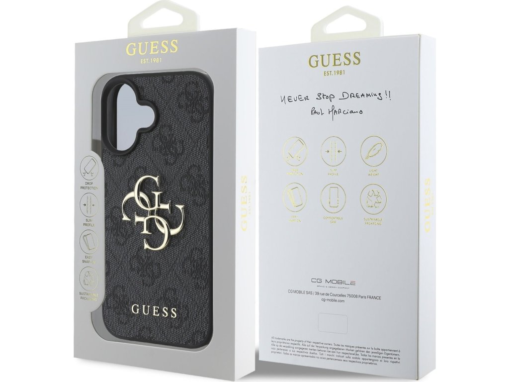 Guess PU 4G Metal Logo Zadný Kryt pre iPhone 16 Grey