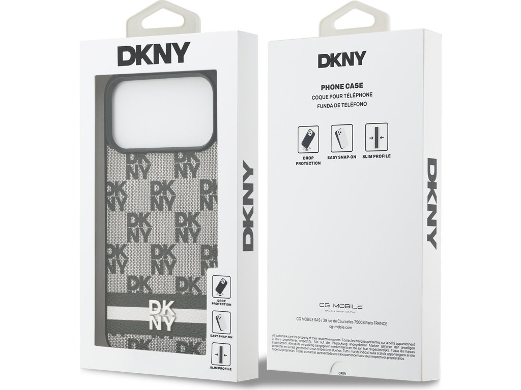 DKNY PU Leather Checkered Pattern and Stripe Zadný Kryt pre iPhone 17 Pro Max Black