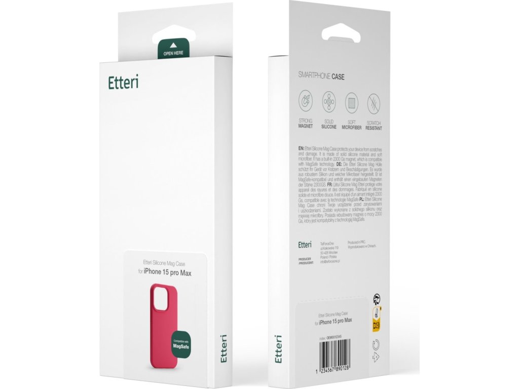 Silikónové puzdro Etteri Mag je štýlovou a funkčnou ochranou pre váš telefón. Vďaka vstavaným magnetom je plne kompatibilné s nabíjačkami MagSafe. Vnútorná strana je podšitá mikrovláknom, ktoré chráni zariadenie pred poškriabaním a nárazmi. Špeciálny povlak chráni pred poškriabaním a nečistotami, zatiaľ čo zvýšené okraje chránia objektív fotoaparátu. Produkt je k dispozícii v niekoľkých farbách na výber: čierna, tmavomodrá, malinová, svetlomodrá a svetloružová.