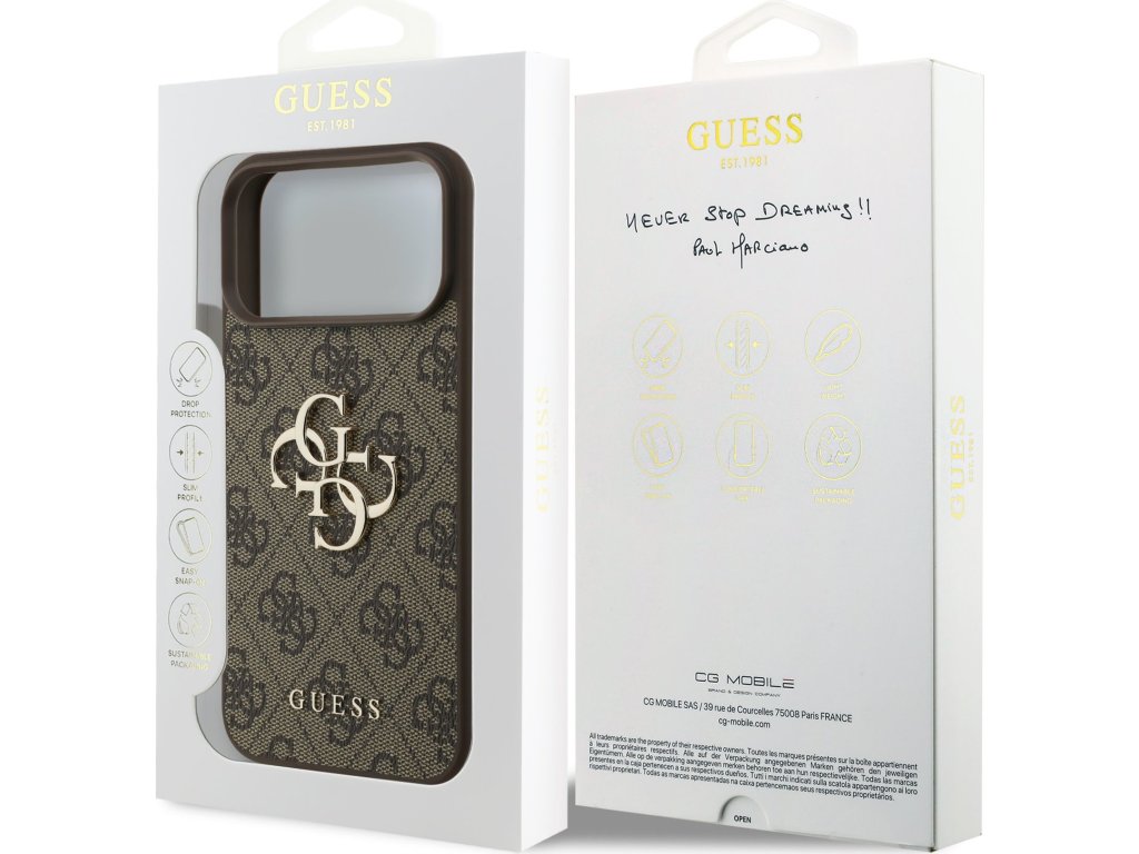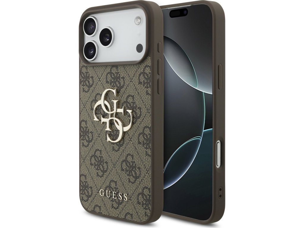 Guess PU 4G Metal Logo Zadný Kryt pre iPhone 17 Pro Max Brown