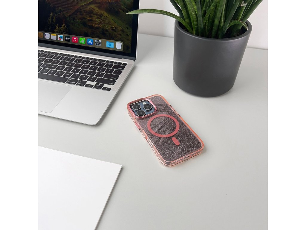 Trblietavý kryt MagSafe kompatibilný pre iPhone 17 Pro Max – ružový
