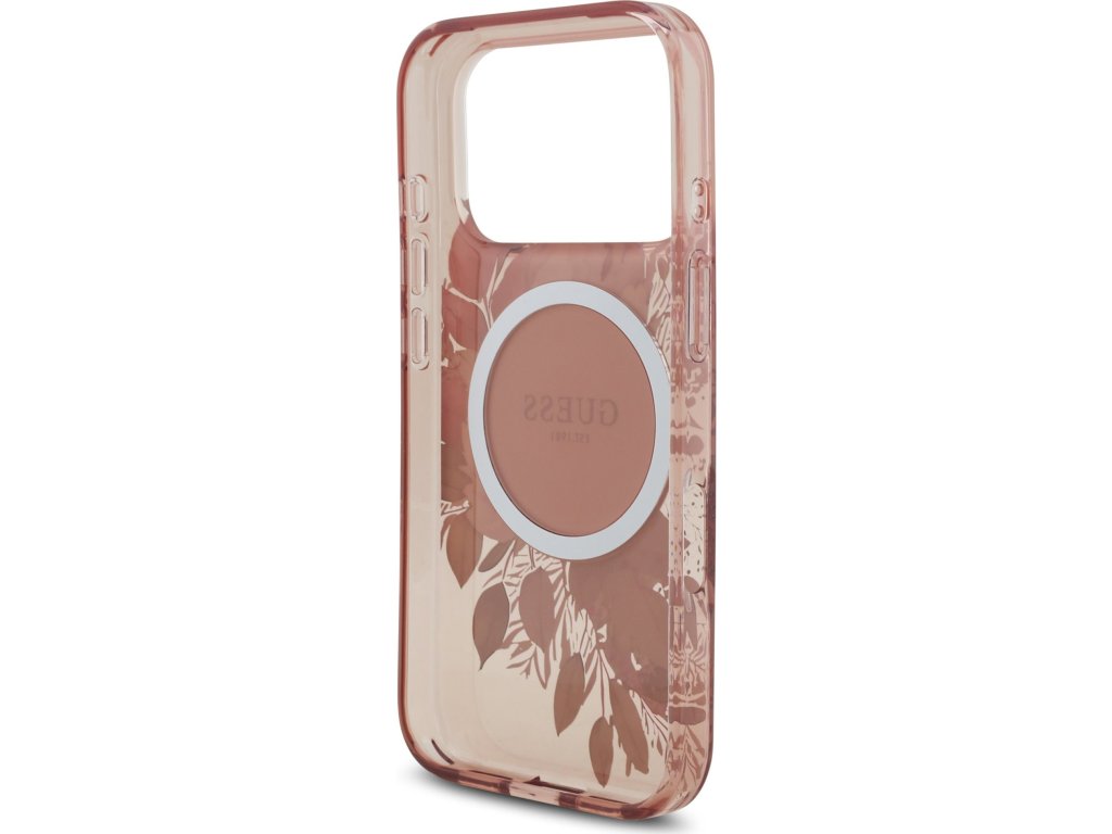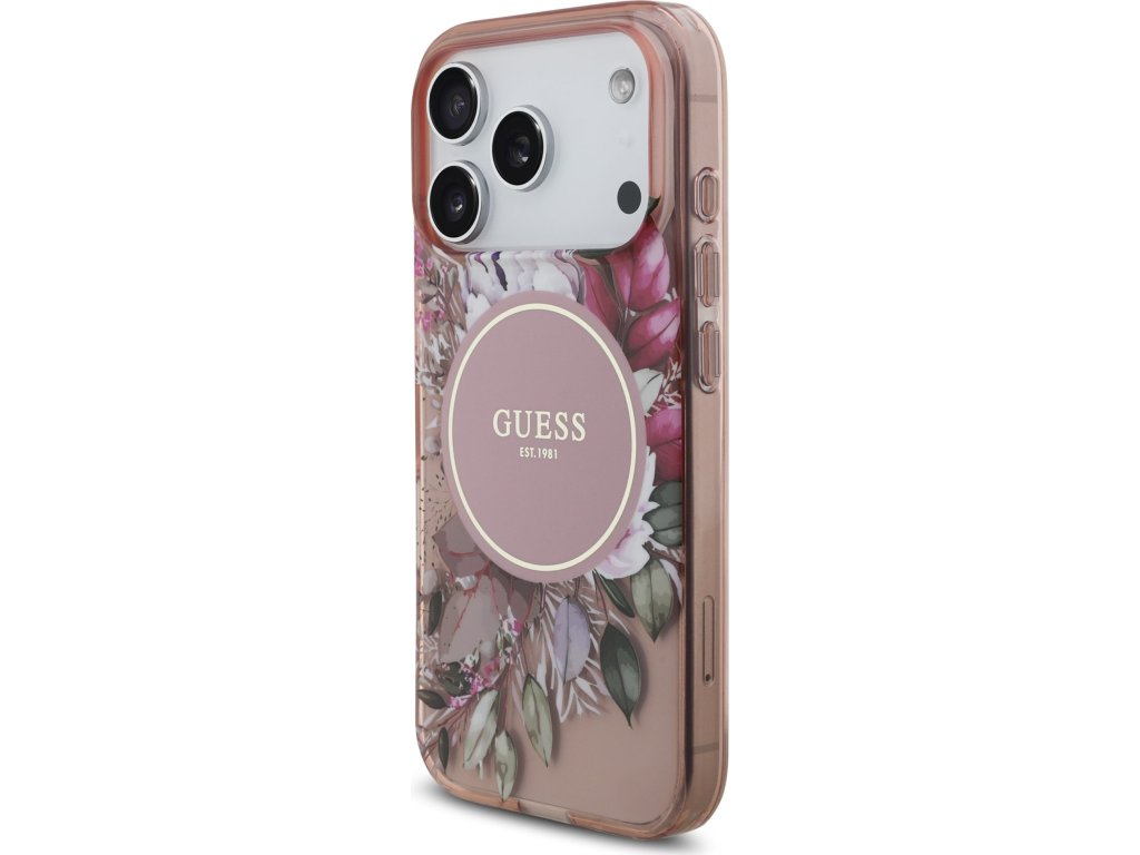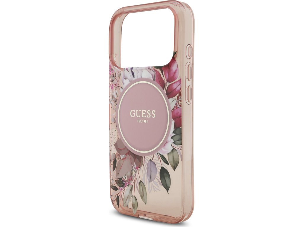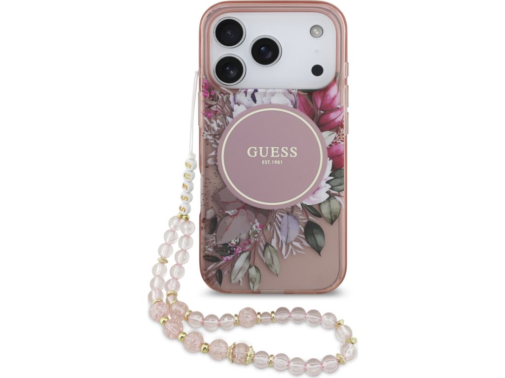 Guess IML Flowers Strap MagSafe Zadný Kryt pre iPhone 17 Pro Pink