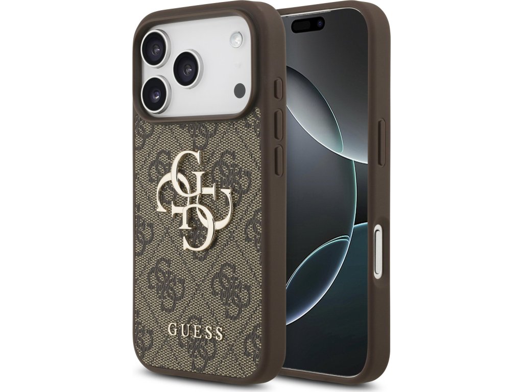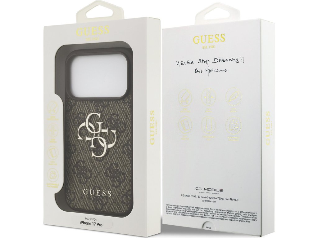 Guess PU 4G Metal Logo Zadný Kryt pre iPhone 17 Pro Brown
