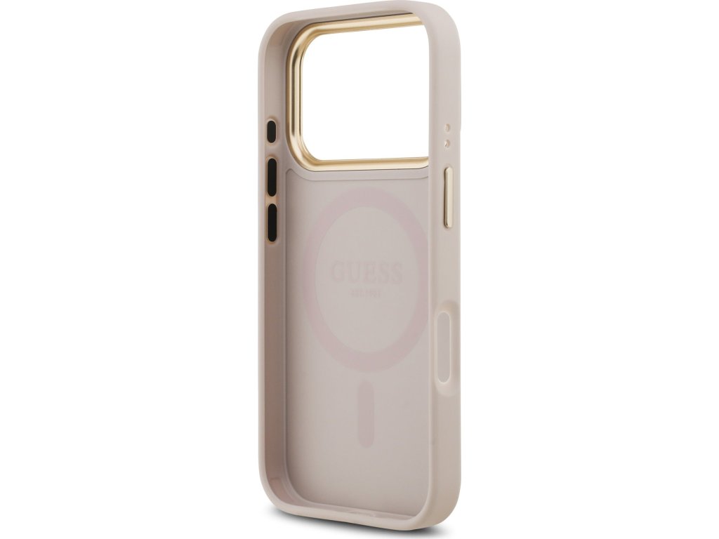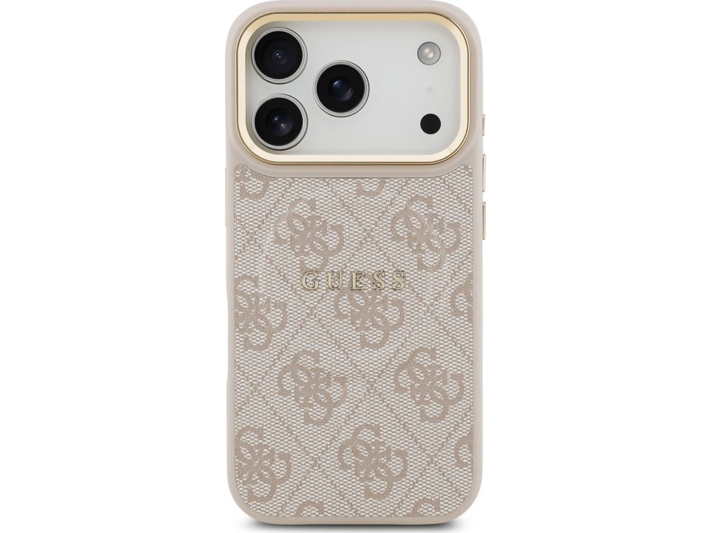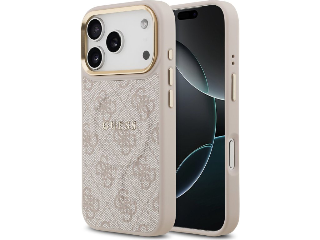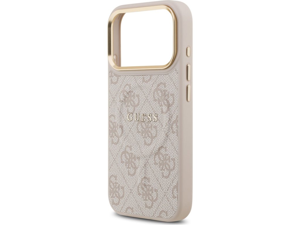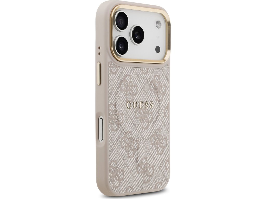 Guess PU Leather 4G Gold Frame MagSafe Zadný Kryt pre iPhone 17 Pro Pink