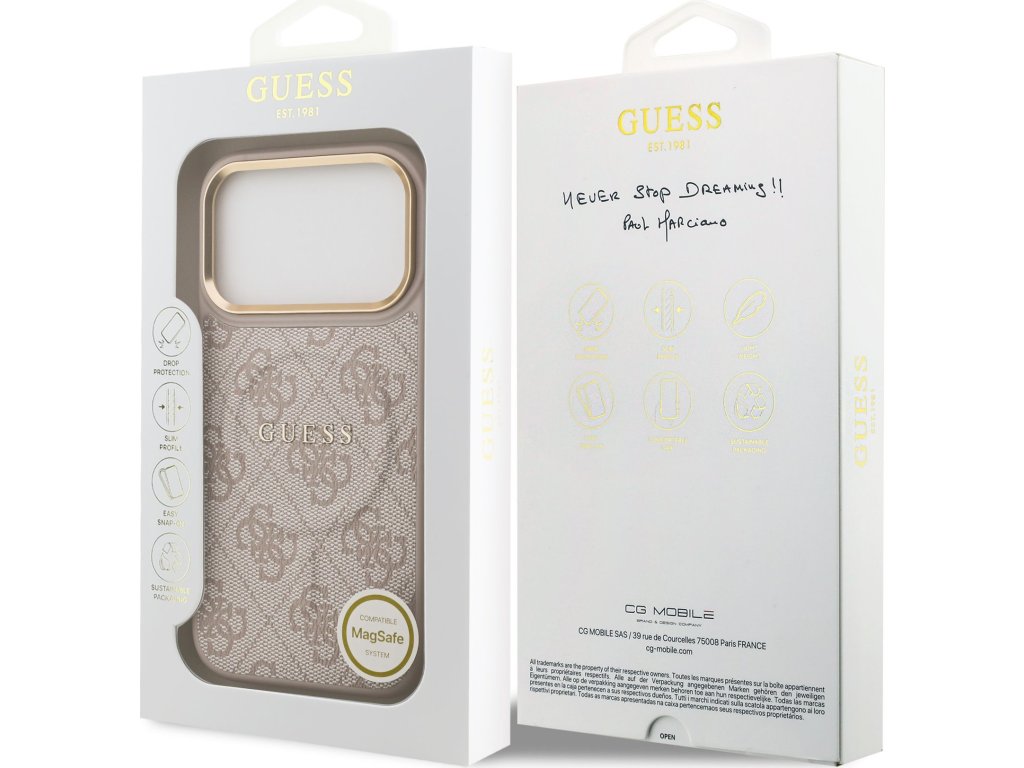 Guess PU Leather 4G MagSafe zadný kryt je dokonalý doplnok pre váš telefón aj váš outfit, ktorý kombinuje funkčnosť a štýl v jednom. Je vyrobený z ľahkej a odolnej PU umelej kože a ponúka skvelú ochranu telefónu aj pohodlia pri používaní. Povrchová úprava krytu zaisťuje, že sa skvele drží v ruke a nešmýka sa, čo minimalizuje riziko vykĺznutia telefónu. Vďaka presnému tvaru perfektne sedí na telefóne a umožňuje ľahký prístup ku všetkým tlačidlám a konektorom. Tento kryt podporuje technológiu MagSafe, čo znamená, že je kompatibilný s bezdrôtovým nabíjaním a ďalšími MagSafe doplnkami. Guess „4G“ elegantná potlač ponúka luxusný vzhľad. Rámček zadného fotoaparátu je zdobený elegantným zlatým prevedením, ktorý krytu dodáva ešte luxusnejší vzhľad. Pokiaľ teda hľadáte kryt, ktorý kombinuje eleganciu a funkčnosť, je tento kúsok od Guess tou pravou voľbou pre vás. Kľúčové vlastnosti: - Originál Guess - Ľahký a odolný kryt z PU umelej kože - Skvele sa drží v ruke a nekĺže - Podpora MagSafe - Presne kopíruje tvar telefónu a umožňuje ľahký prístup k tlačidlám a konektorom. - Chráni telefón pred prachom a poškriabaním - Elegantný a funkčný doplnok pre váš telefón aj outfit