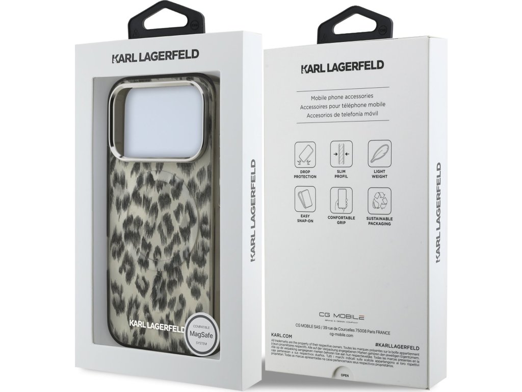 Karl Lagerfeld IML Leopard MagSafe zadný kryt je dokonalý doplnok pre váš telefón aj outfit, ktorý kombinuje funkčnosť a štýl v jednom. Tento kryt je vyrobený z kombinácie pevného PC plastu na zadnej strane a TPU mäkkého plastu na bokoch, čo vytvára dokonalú symbiózu odolnosti a pohodlia. Jeho pružný a mäkký materiál sa prispôsobí tvaru vášho telefónu a umožňuje ľahký prístup ku všetkým tlačidlám a konektorom, zatiaľ čo textúra krytu zaistí, že sa skvele drží v ruke a nešmýka sa. Tento kryt podporuje technológiu MagSafe, čo znamená, že je kompatibilný s bezdrôtovým nabíjaním a ďalšími MagSafe doplnkami. Zaujmite výrazným a odvážnym leopardím vzorom, ktorý okamžite priťahuje pozornosť. Kombinácia hnedých a čiernych tónov evokuje divoký a moderný štýl. Stavte na kvalitu, originalitu a dokonalú ochranu pre váš telefón s prémiovým krytom Karl Lagerfeld. Kľúčové vlastnosti: - Originál Karl Lagerfeld - Ľahký a odolný kryt z prémiového PC a TPU - Skvele sa drží v ruke a nekĺže - Podpora MagSafe - Presne kopíruje tvar telefónu a umožňuje ľahký prístup k tlačidlám a konektorom. - Chráni telefón pred prachom a poškriabaním - Štýlový a funkčný doplnok pre váš telefón aj outfit