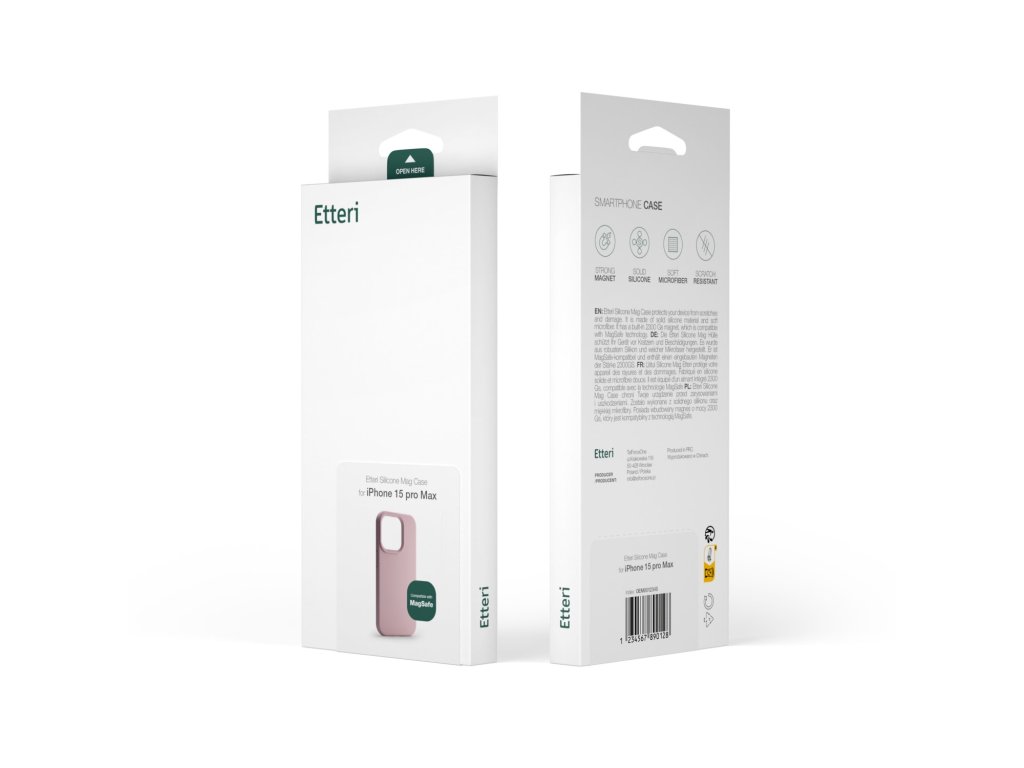 Silikónové puzdro Etteri Mag je štýlovou a funkčnou ochranou pre váš telefón. Vďaka vstavaným magnetom je plne kompatibilné s nabíjačkami MagSafe. Vnútorná strana je podšitá mikrovláknom, ktoré chráni zariadenie pred poškriabaním a nárazmi. Špeciálny povlak chráni pred poškriabaním a nečistotami, zatiaľ čo zvýšené okraje chránia objektív fotoaparátu. Produkt je k dispozícii v niekoľkých farbách na výber: čierna, tmavomodrá, malinová, svetlomodrá a svetloružová.