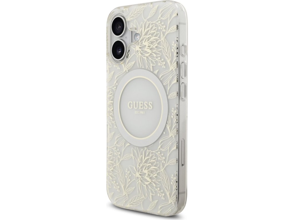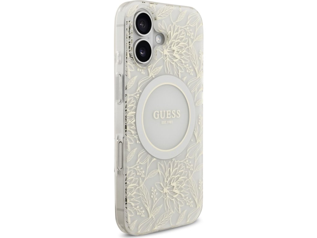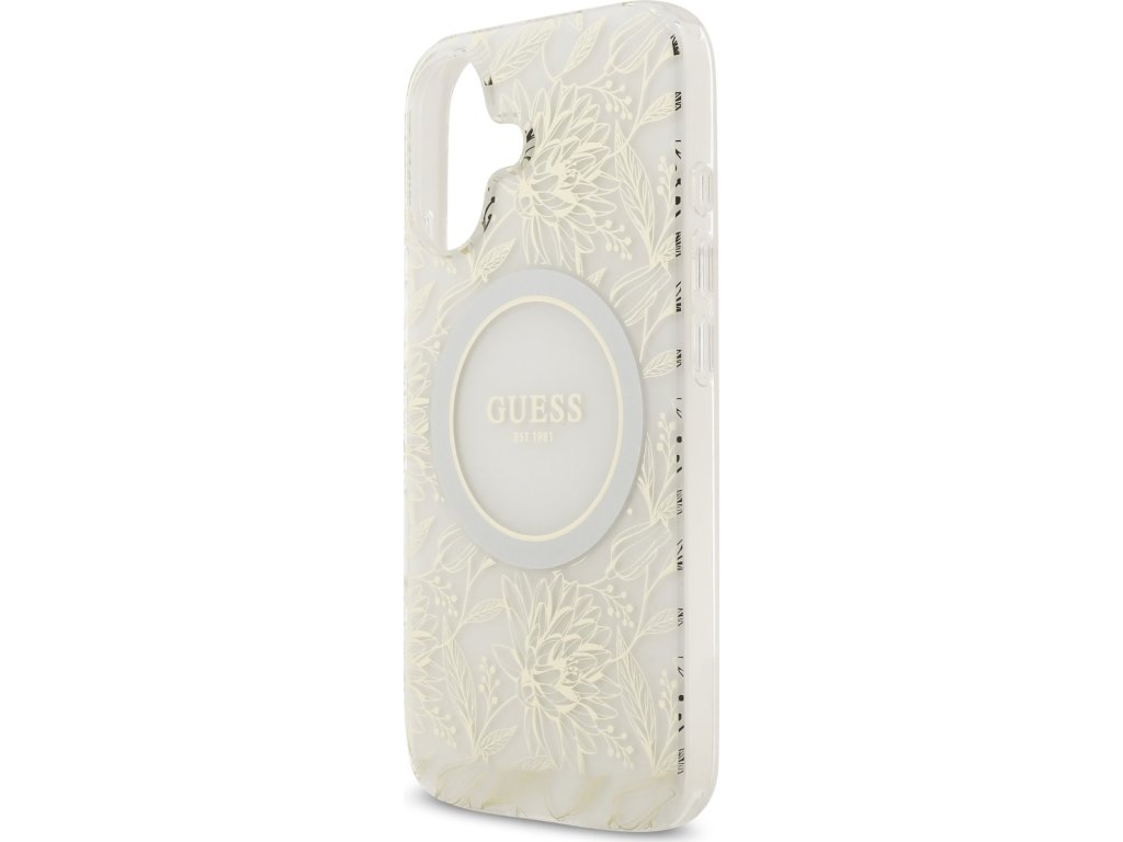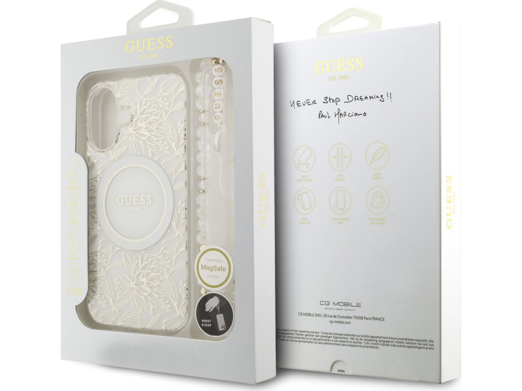 Guess IML Flowers Allover Strap MagSafe Zadný Kryt pre iPhone 17 White
