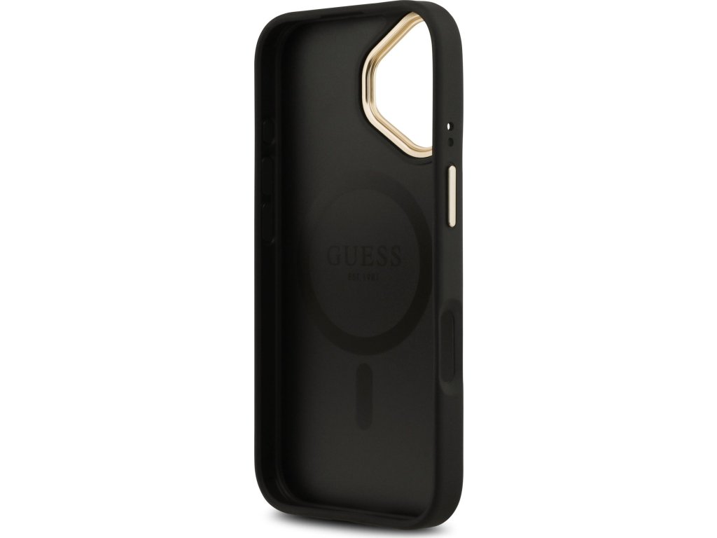 Guess PU Leather 4G Gold Frame MagSafe Zadný Kryt pre iPhone 17 Black