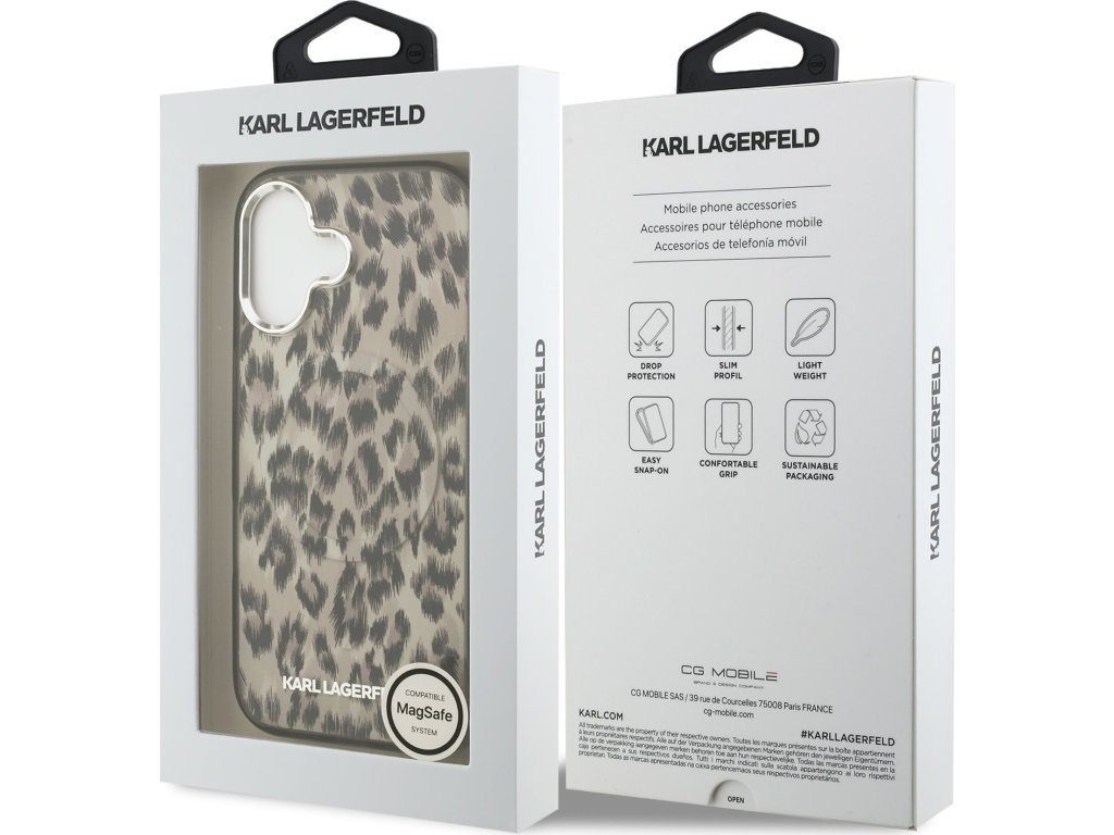 Karl Lagerfeld IML Leopard MagSafe zadný kryt je dokonalý doplnok pre váš telefón aj outfit, ktorý kombinuje funkčnosť a štýl v jednom. Tento kryt je vyrobený z kombinácie pevného PC plastu na zadnej strane a TPU mäkkého plastu na bokoch, čo vytvára dokonalú symbiózu odolnosti a pohodlia. Jeho pružný a mäkký materiál sa prispôsobí tvaru vášho telefónu a umožňuje ľahký prístup ku všetkým tlačidlám a konektorom, zatiaľ čo textúra krytu zaistí, že sa skvele drží v ruke a nešmýka sa. Tento kryt podporuje technológiu MagSafe, čo znamená, že je kompatibilný s bezdrôtovým nabíjaním a ďalšími MagSafe doplnkami. Zaujmite výrazným a odvážnym leopardím vzorom, ktorý okamžite priťahuje pozornosť. Kombinácia hnedých a čiernych tónov evokuje divoký a moderný štýl. Stavte na kvalitu, originalitu a dokonalú ochranu pre váš telefón s prémiovým krytom Karl Lagerfeld. Kľúčové vlastnosti: - Originál Karl Lagerfeld - Ľahký a odolný kryt z prémiového PC a TPU - Skvele sa drží v ruke a nekĺže - Podpora MagSafe - Presne kopíruje tvar telefónu a umožňuje ľahký prístup k tlačidlám a konektorom. - Chráni telefón pred prachom a poškriabaním - Štýlový a funkčný doplnok pre váš telefón aj outfit