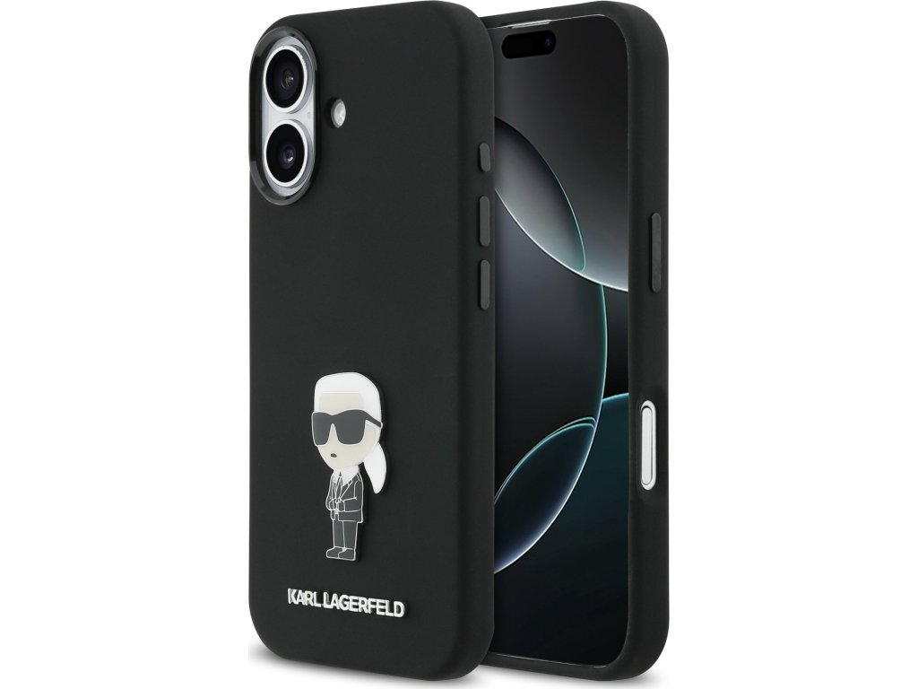 Karl Lagerfeld Liquid Silicone Metal Ikonik Zadný Kryt pre iPhone 17 Black