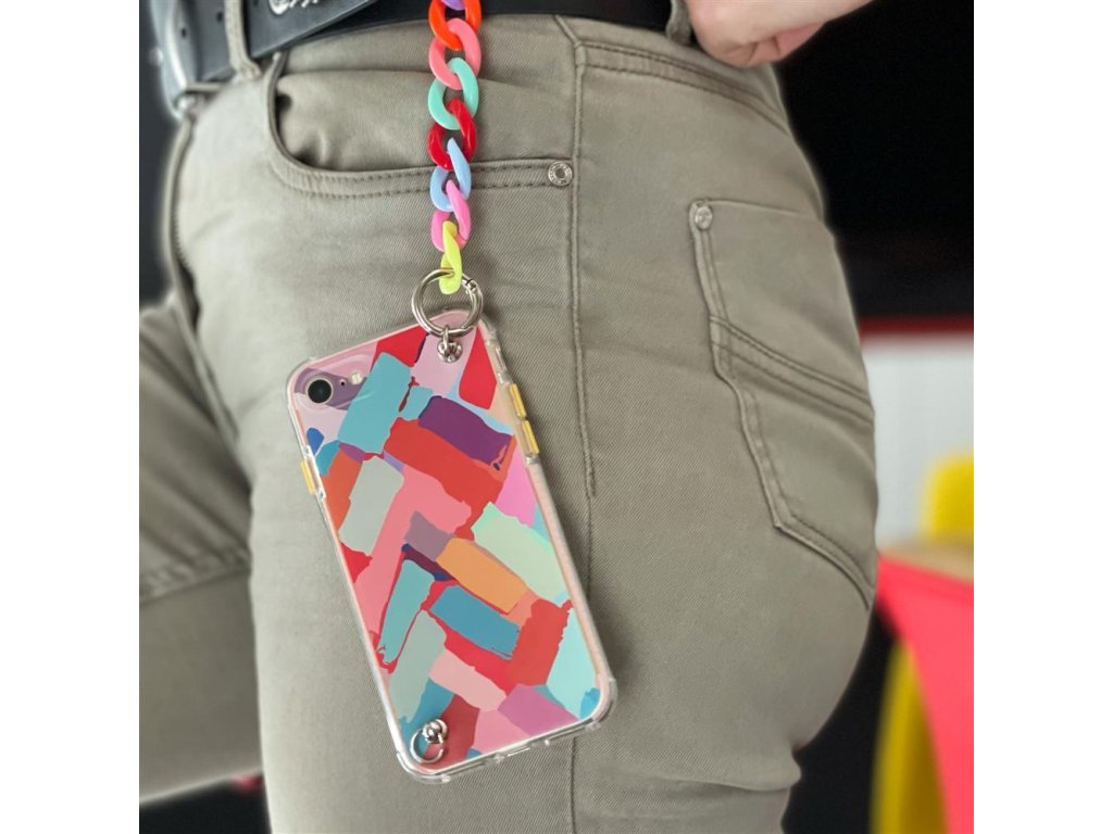 Farebné puzdro na iPhone, ktoré sa vyznačuje zladenou ozdobnou retiazkou. Úlohou tohto pozoruhodného doplnku nie je len originálna dekorácia, ale aj ešte bezpečnejšie uchytenie zariadenia v ruke. Prítomnosť retiazky zabraňuje vypadnutiu smartfónu pri fotení, sledovaní filmov alebo čítaní správ.