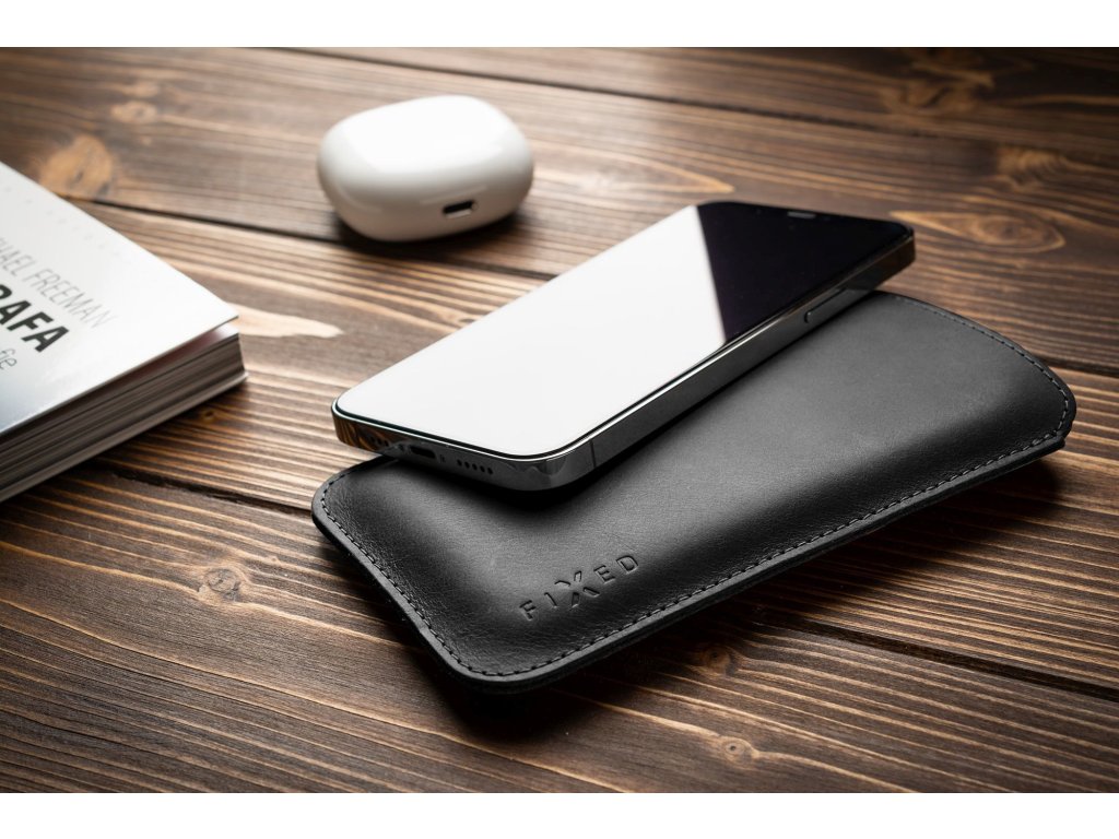 Tenké púzdro FIXED Slim vyrobené z pravej kože pre Apple iPhone 12/12 Pro/13/13 Pro, čierne