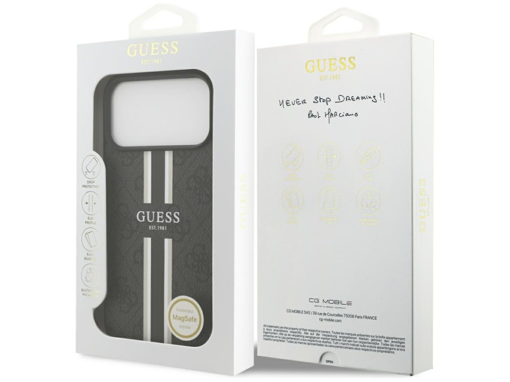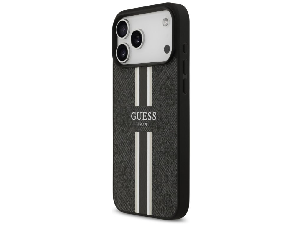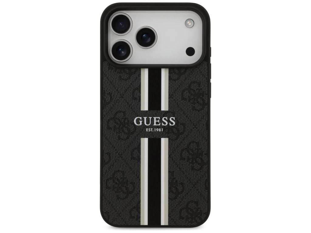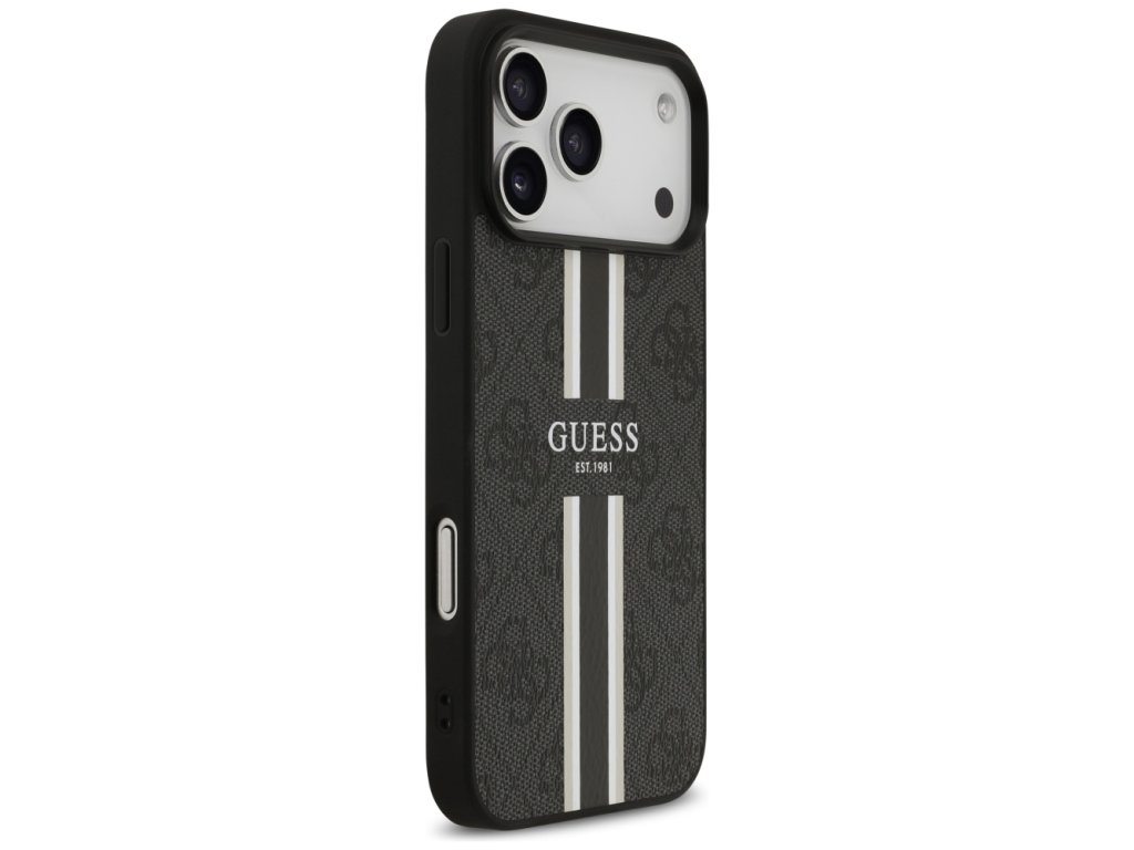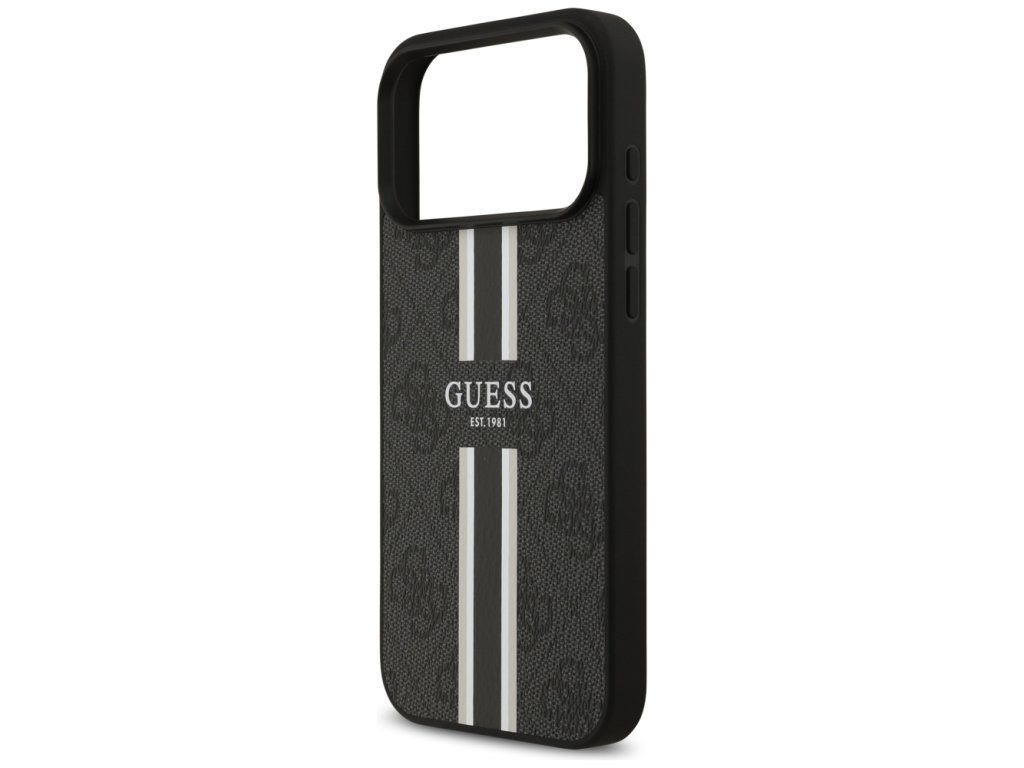 Pouzdro Guess 4G s potiskem pruhů MagSafe pro iPhone 17 Pro Max černé
