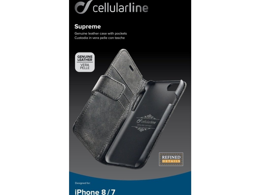 Prémiové kožené puzdro typu kniha Cellularline Supreme pre Apple iPhone 7/8/SE (2020/2022), čierne