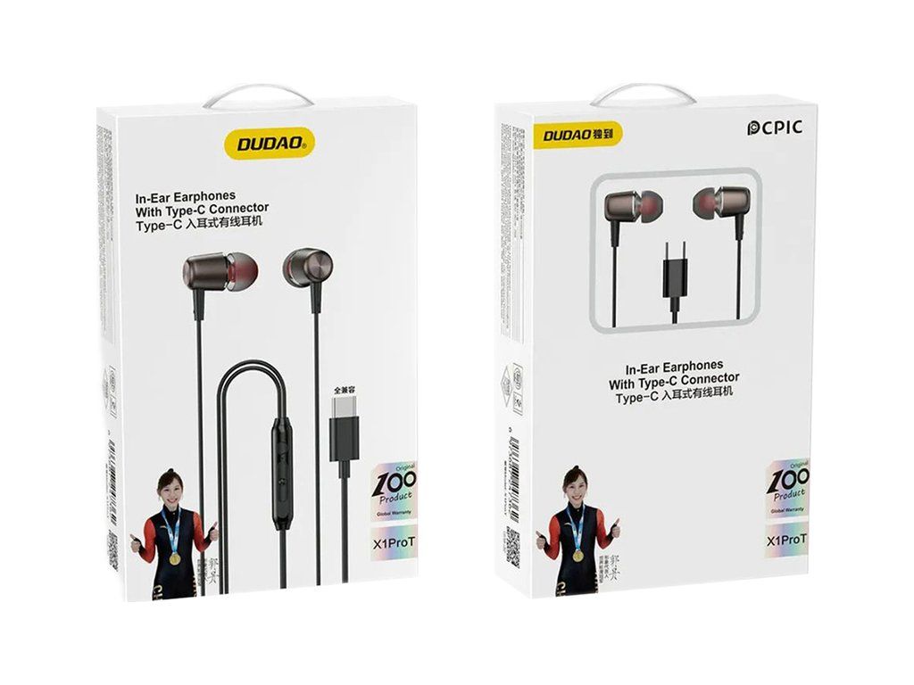 Dudao X1PROT in-ear drátová sluchátka s USB-C konektorem, délka 1,2 m - černá