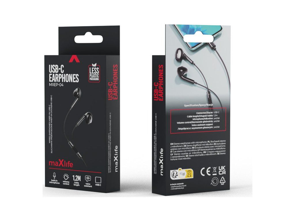 Maxlife drátová sluchátka MXEP-04 USB-C černá