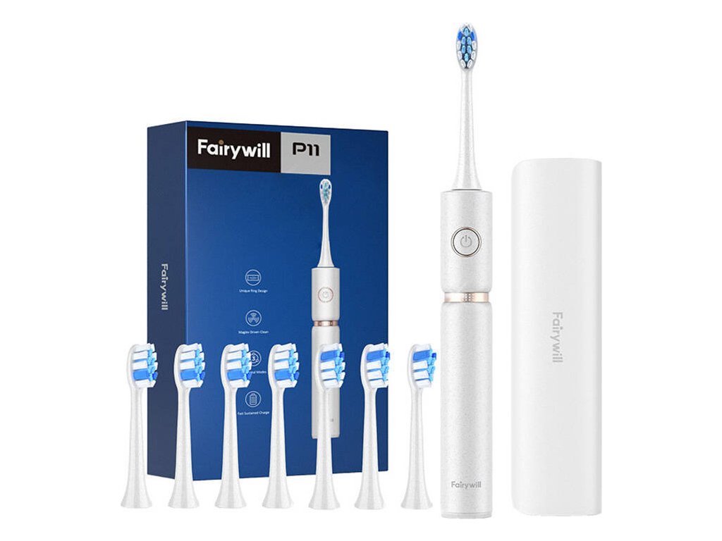 Sonický zubní kartáček se sadou hlavic a pouzdrem FairyWill FW-P11 (bílý)