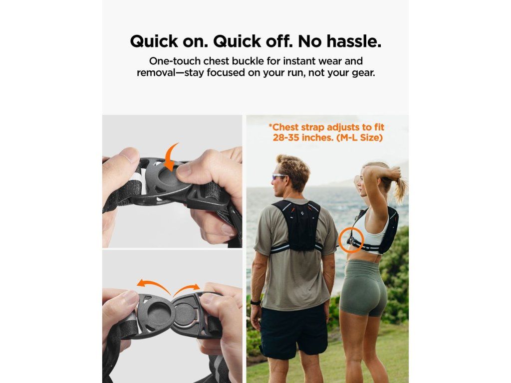 Spigen A720 Dynamic Shield je lehká běžecká vesta s promyšleným uspořádáním kapes, určená pro běžce a aktivní jedince, kteří si během tréninku cení organizovanosti a pohodlí. Díky nastavitelnému hrudnímu popruhu se snadno přizpůsobí jakémukoliv typu postavy a umožňuje rychlé oblékání.