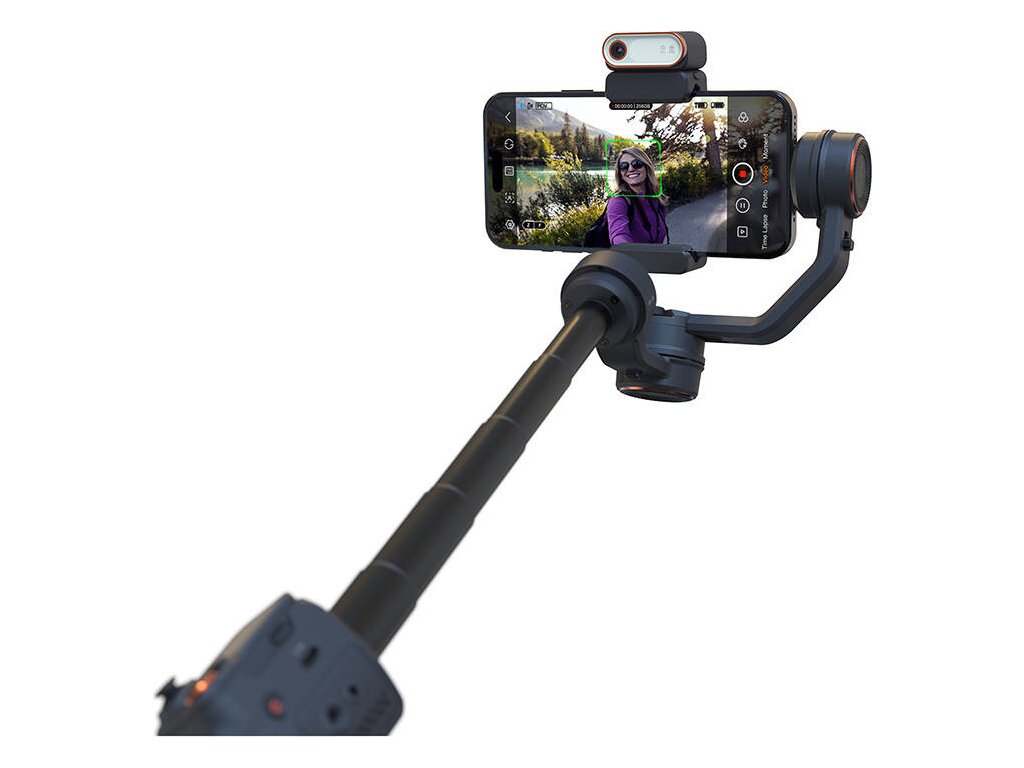 Gimbal je vybaven speciálním modulem AI Tracker, který umožňuje inteligentní sledování objektů a osob v reálném čase bez ohledu na používanou aplikaci. Tato funkce je užitečná zejména při natáčení vlogů, živých přenosů nebo dynamických scén, kde přesné sledování záběru hraje klíčovou roli.