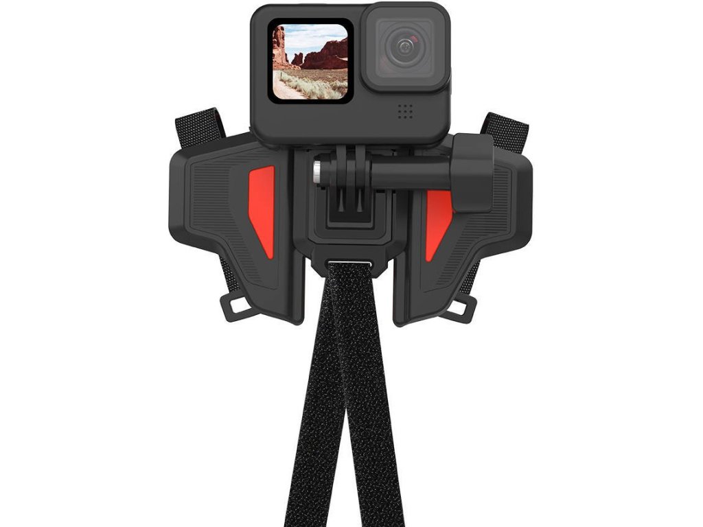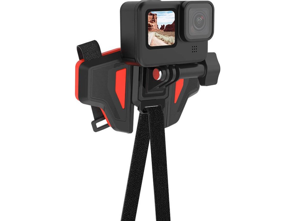 Držák má tvar motýlých křídel, přičemž obě lze složit. Díky tomu jej můžete ještě lépe přizpůsobit tvaru své přilby. Upevnění na suchý zip umožňuje jednoduchou, ale stabilní montáž. Kamera se upevňuje pomocí odolného závěsu z nerezové oceli a nylonu PA66.