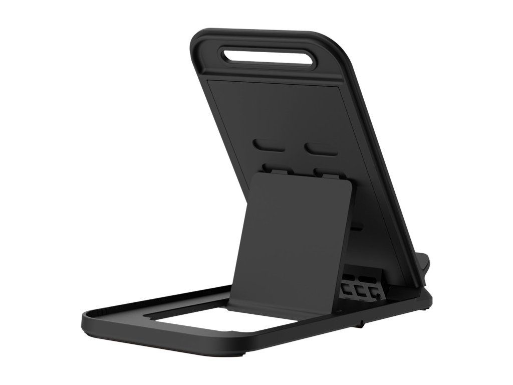 Stojánek je vyroben z odolného plastu a je navržen s důrazem na detail. Protiskluzová základna zajišťuje, že vaše zařízení zůstane bezpečně na svém místě. Díky možnosti složení je držák velmi kompaktní, takže jej můžete snadno přenášet v brašně nebo batohu a používat kdekoli v terénu.