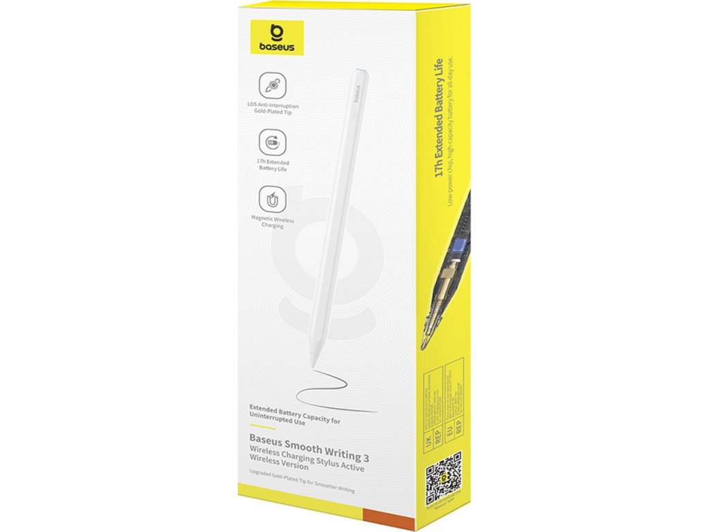 Baseus Smooth Writing 3 je pokročilý aktivní stylus nové generace, který nově definuje pohodlí psaní a kreslení na obrazovce. Díky technologii LDS (Laser Direct Structuring) je signál mezi stylusem a tabletem mimořádně stabilní, což vede k plynulému a nepřerušovanému provozu. Pozlacený hrot z POM zajišťuje ultra přesné linky a realistický zážitek z psaní. Stylus se díky algoritmům umělé inteligence automaticky aktivuje po zvednutí a možnost upravit sílu signálu prostřednictvím aplikace Baseus umožňuje přizpůsobit zařízení různým modelům tabletů. Magnetické bezdrátové nabíjení eliminuje potřebu kabelu a silný 2N magnet umožňuje bezpečné připevnění stylusu k pouzdru. S výdrží baterie až 17 hodin, detekcí úhlu náklonu a 32 ovládacími funkcemi tento nástroj posouvá kreativitu na novou úroveň.