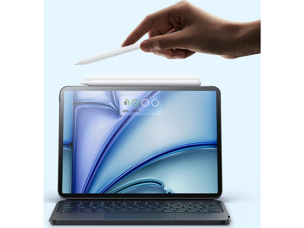 - Bezdrátové nabíjení a silný magnet: Stylus se připojí k tabletu a nabíjí se bez kabelů, čímž se eliminuje riziko ztráty a zamotání drátů.