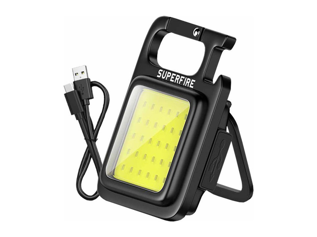 Praktická svítilna Superfire MX16 se skvěle hodí pro mnoho situací. Má 4 režimy svícení a její jas dosahuje 600 lm. Vestavěná dobíjecí baterie zajistí až 2 hodiny provozu a v případě potřeby ji můžete snadno nabít kabelem USB-C (je součástí balení). Je mimořádně lehká a kompaktní, takže ji můžete mít stále u sebe. Za zmínku stojí také jeho vodotěsné provedení (IP44) a funkce otvírání lahví.