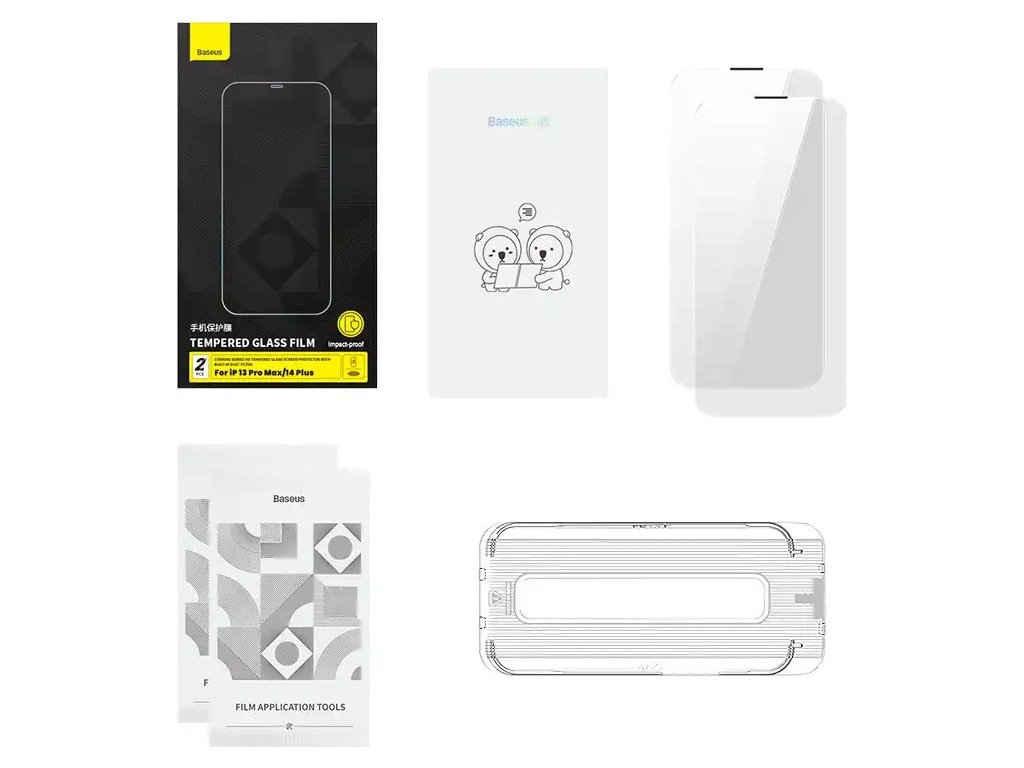 Baseus 0,4mm Corning HD tvrdené sklo pre iPhone 13 Pro Max/14 Plus + čistiaca sada Vybavte sa tvrdeným sklom značky Baseus, ktoré poskytne vášmu smartfónu ochranu proti poškriabaniu.