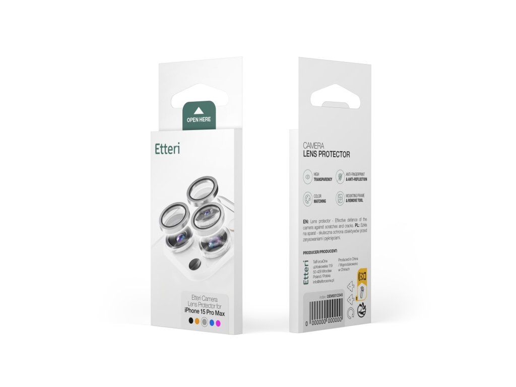 Ochranné sklo Etteri na objektiv fotoaparátu s hliníkovým okrajem – stylová ochrana fotoaparátu Ochranné sklo Etteri na objektiv fotoaparátu je ochranné sklo s matným hliníkovým okrajem, které dokonale ladí s barvou smartphonu. Poskytuje estetický vzhled a účinnou ochranu čoček. Oleofobní a antireflexní vrstvy zajišťují jasnost a nemají vliv na kvalitu fotografií. Tvrdost 9H chrání před poškrábáním, nárazy a nečistotami. Díky montážnímu rámu je aplikace rychlá a přesná a po odstranění sklo nezanechává žádné stopy. Ideální řešení pro uživatele a servisní střediska.