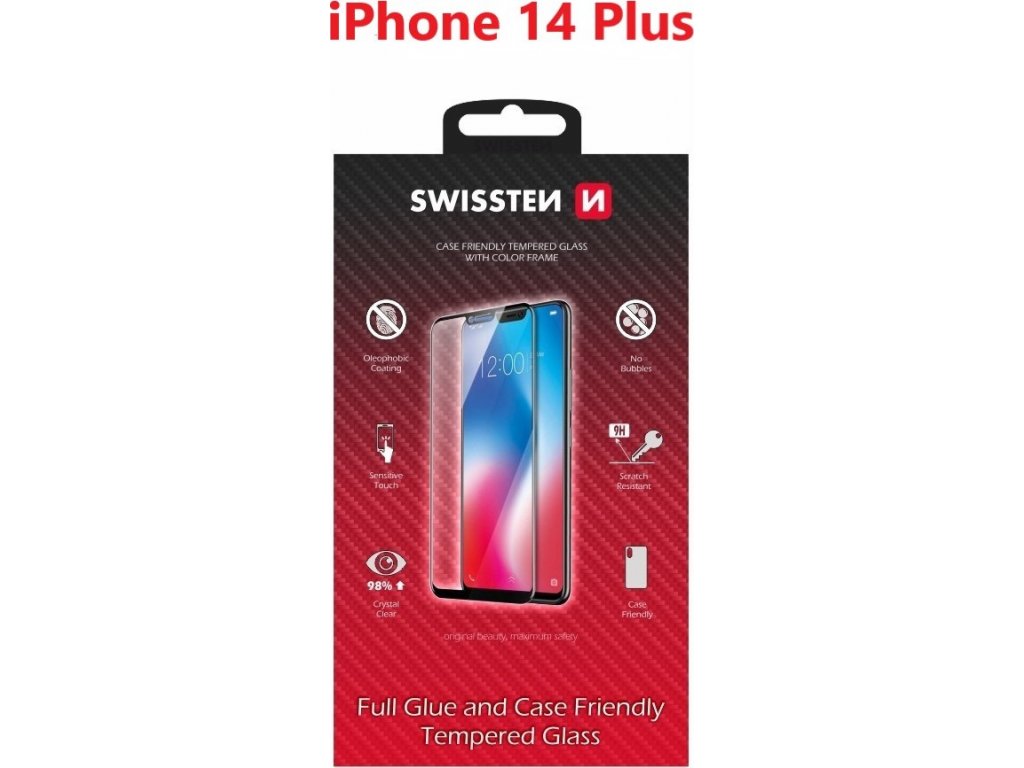 SKLO SWISSTEN FULL GLUE, COLOR FRAME, CASE FRIENDLY PRO APPLE IPHONE 14 PLUS ČERNÉ