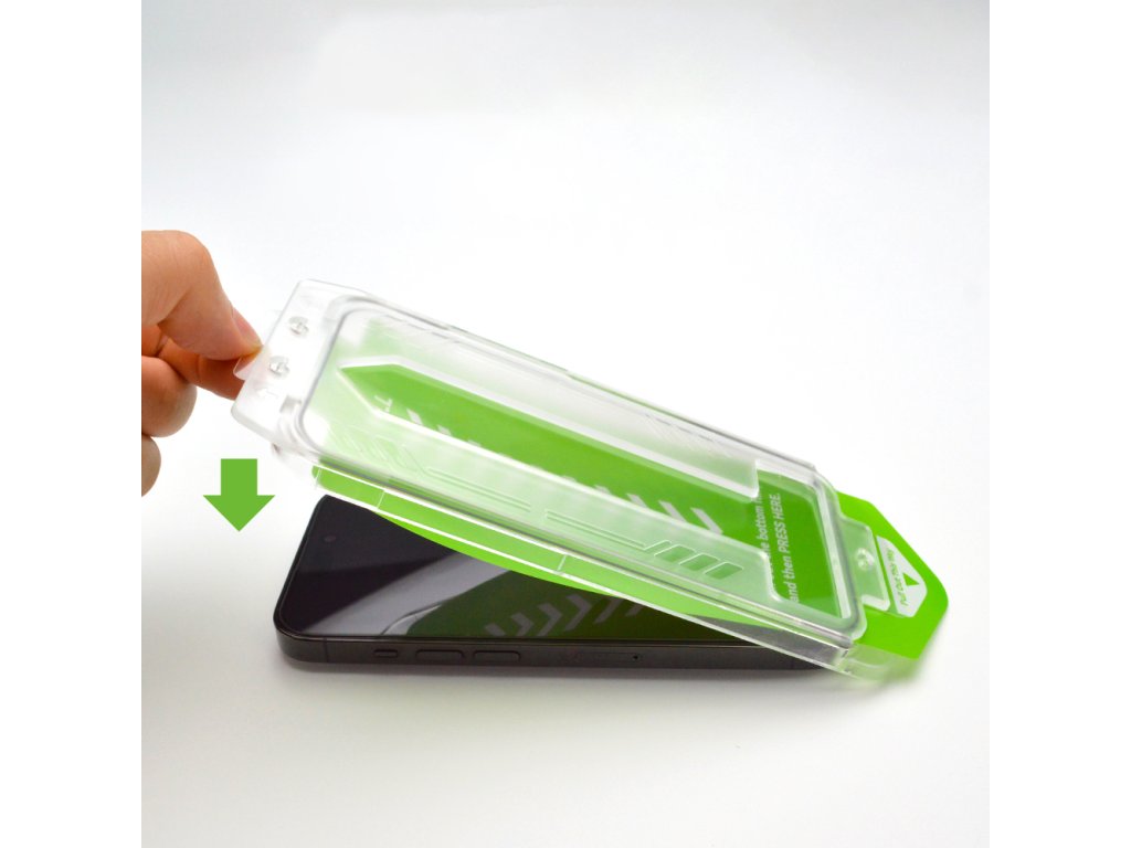 - Nasaďte rámeček se sklem na přední část telefonu.