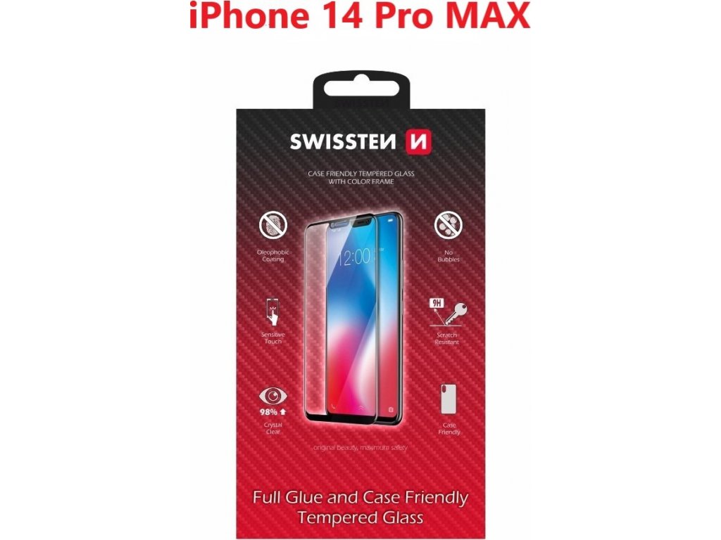 SKLO SWISSTEN FULL GLUE, COLOR FRAME, CASE FRIENDLY APPLE IPHONE 14 Pro Max ČIERNE