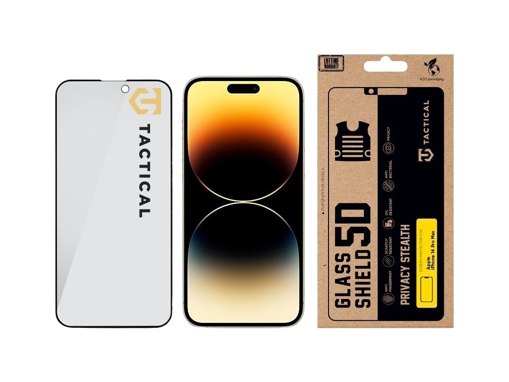 GLASS SHIELD PRIVACY STEALTH Ochranné sklo Tactical Glass Shield Privacy Stealth chrání Tvé zařízení před nejdrsnějšími střety a obsah displeje před šmíráky. Testováno na bojišti každodenního dění, stvořeno pro ty nejnáročnější scénáře! FLEXIBILNÍ TVRDOST Ochranné sklo Tactical Glass Shield Privacy Stealth odolává a zároveň pohlcuje nárazy, čímž poskytuje nepřekonatelnou odolnost při zachování flexibility, která je potřebná pro výkon v těch nejnáročnějších podmínkách. Je to prověřený bojovník, který vydrží déle než většina ochrany na trhu. NENÍ SKLO JAKO SKLO Toto není jen obyčejné sklo - je to vícevrstvá obranná jednotka. Hlavní vrstva s technologií Privacy Mode, chrání obsah displeje před šmíráky. To znamená, že kdokoliv vedle vás neuvidí obsah vašeho displeje. Díky oleofobní vrstvě a vrstvě proti otiskům prstů a nárazům zůstane tvůj displej čistý a chráněný před každodenními nárazy, rozlitím nebo poškrábáním. Jemně leštěné hrany a precizní vrstva AB lepidla zajišťují vzduchotěsné přilnutí k tvému zařízení, aniž by zanechaly slabá místa, kam by se mohl dostat prach nebo nečistoty. Každé sklo je na míru přizpůsobeno konkrétnímu modelu zařízení, zaručující dokonalou ochranu. NEODOLATELNĚ ODOLNÝ Tento kousek není jen pro parádu. U nás v Tactical dbáme na to, aby věci něco vydržely. Ochranné sklo bylo podrobeno tvrdým podmínkám a při výrobě jsme použili velice odolné materiály a aplikovali nejnovější technologie pro co nejlepší výstup ochrany. Je to sklo, na které se můžeš spolehnout i v těch nejextrémnějších podmínkách. I proto se na toto sklo vztahuje program doživotní záruky.* Viz podmínky programu doživotní záruky Tactical. BE ECO My v Tactical máme rádi přírodu. Všechny naše produkty jsou balené do ECO krabiček z recyklovaného papíru tak, aby co nejméně zatěžovaly životní prostředí. Mysli takticky!
