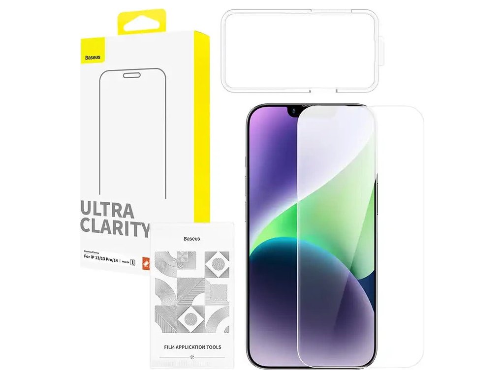 Ochranné tvrzené sklo s instalačním rámečkem Baseus OS pro Iphone 13/13 Pro/14 (čiré)